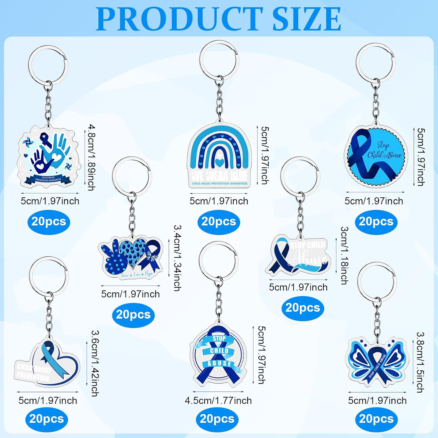 【What You Get】You will receive 160 pieces of child abuse prevention awareness keychains in 8 different styles, 20 pieces for each style, adequate in quantity and rich in styles to satisfy your use and replacement demands, as well as sharing needs.