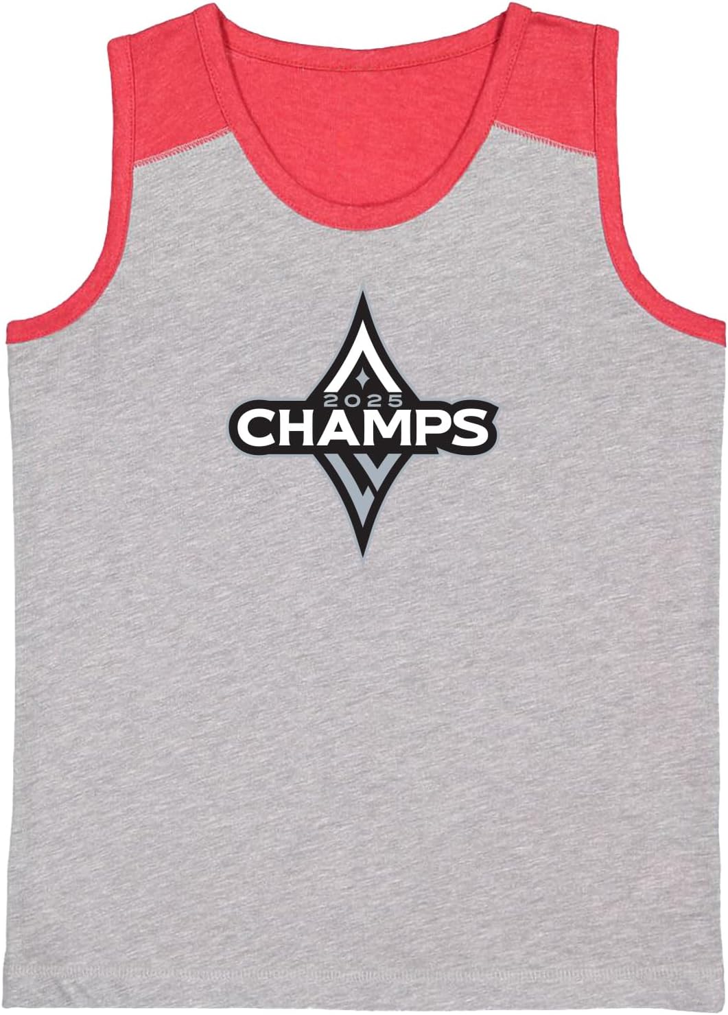 Looking for the perfect tank to wear anytime? Look no further! This awesome 2025 Champs Champions – Las Vegas Sports Youth Contrast Back Tank Top is a comfortable, affordable way for your little guy to express themselves. Whether purchasing for a son, daughter, niece, nephew, or grandchild you can be sure to put a smile on their face. The design is printed on a soft, comfortable, 60% Combed Ringspun Cotton / 40% Polyester contrast back fine jersey tank. This amazing tank will become a staple in your child’s wardrobe. Features coverstitched bottom hem, side seam construction, and a contrast back panel with forward shoulder peicing to provide style and durability.