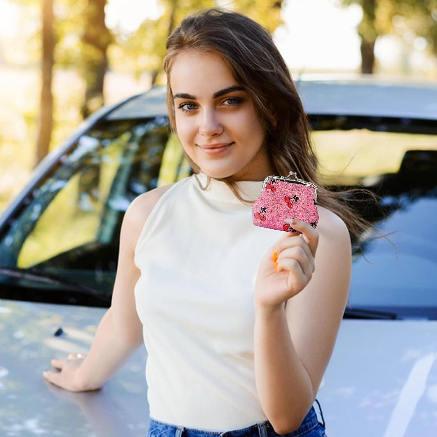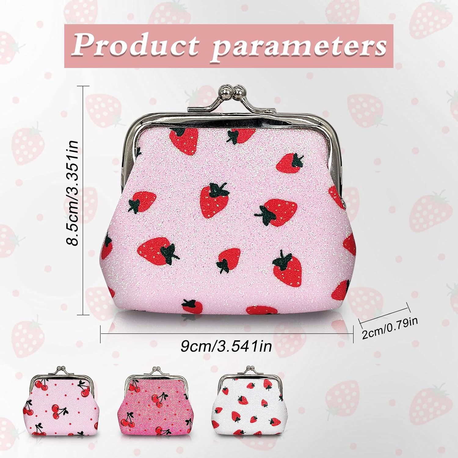 Cute Patterns: There are two styles of fruit prints on the womens coin purse: strawberries and cherries. They are brightly colored , which has a vivid apperance
