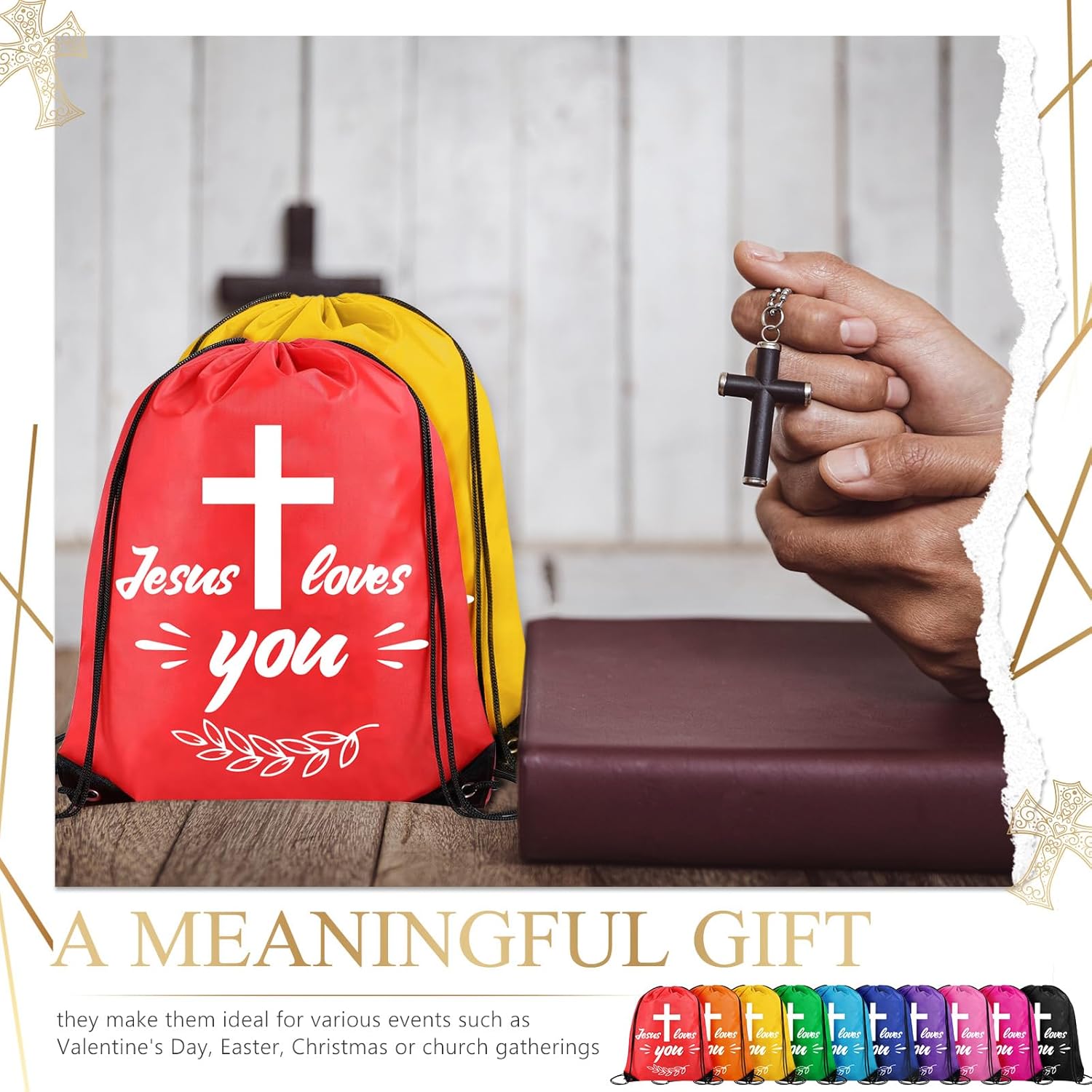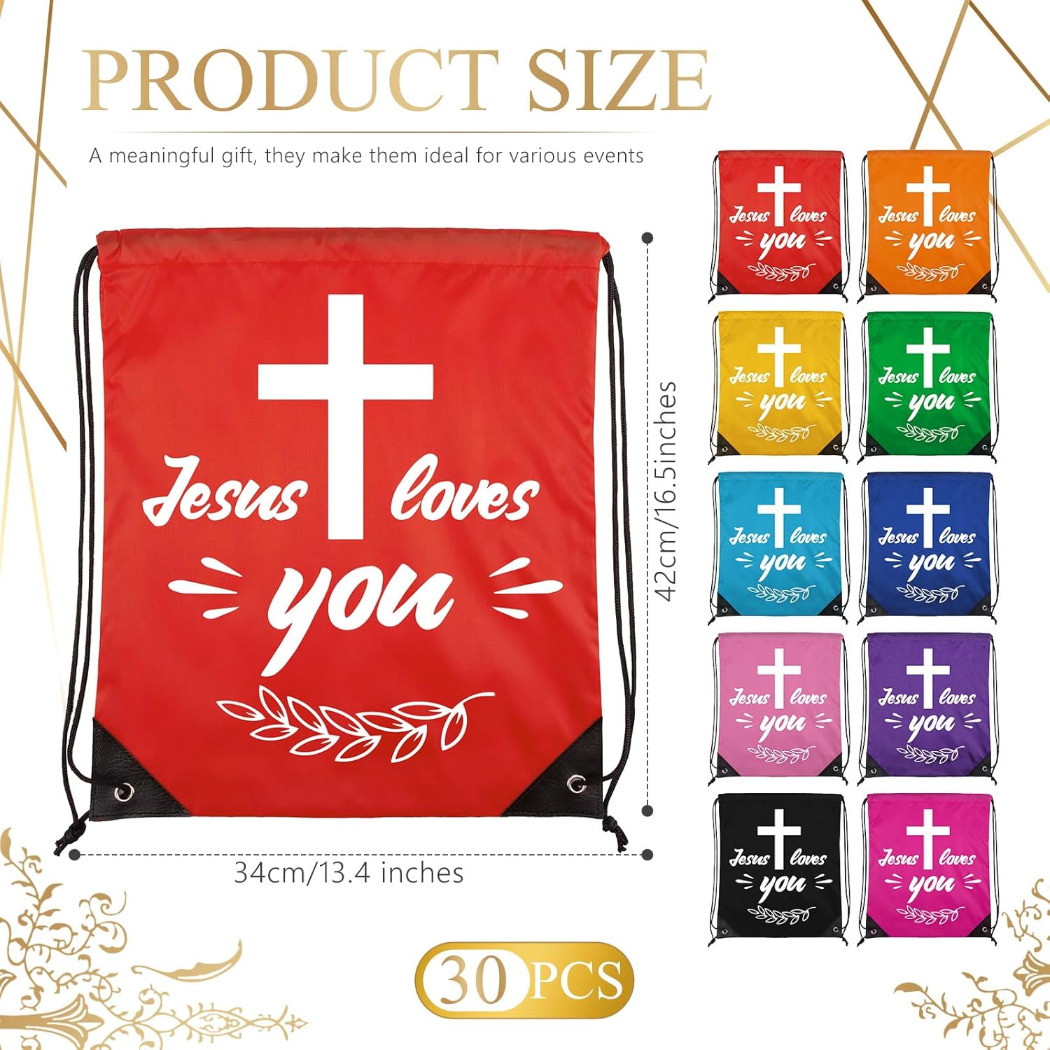 Durable and Convenient: Our 30 Pieces Jesus Loves You Drawstring Backpack is made of high-quality materials, ensuring its durability for long-term use. The drawstring design allows for easy opening and closing, making it convenient for storing and carrying items