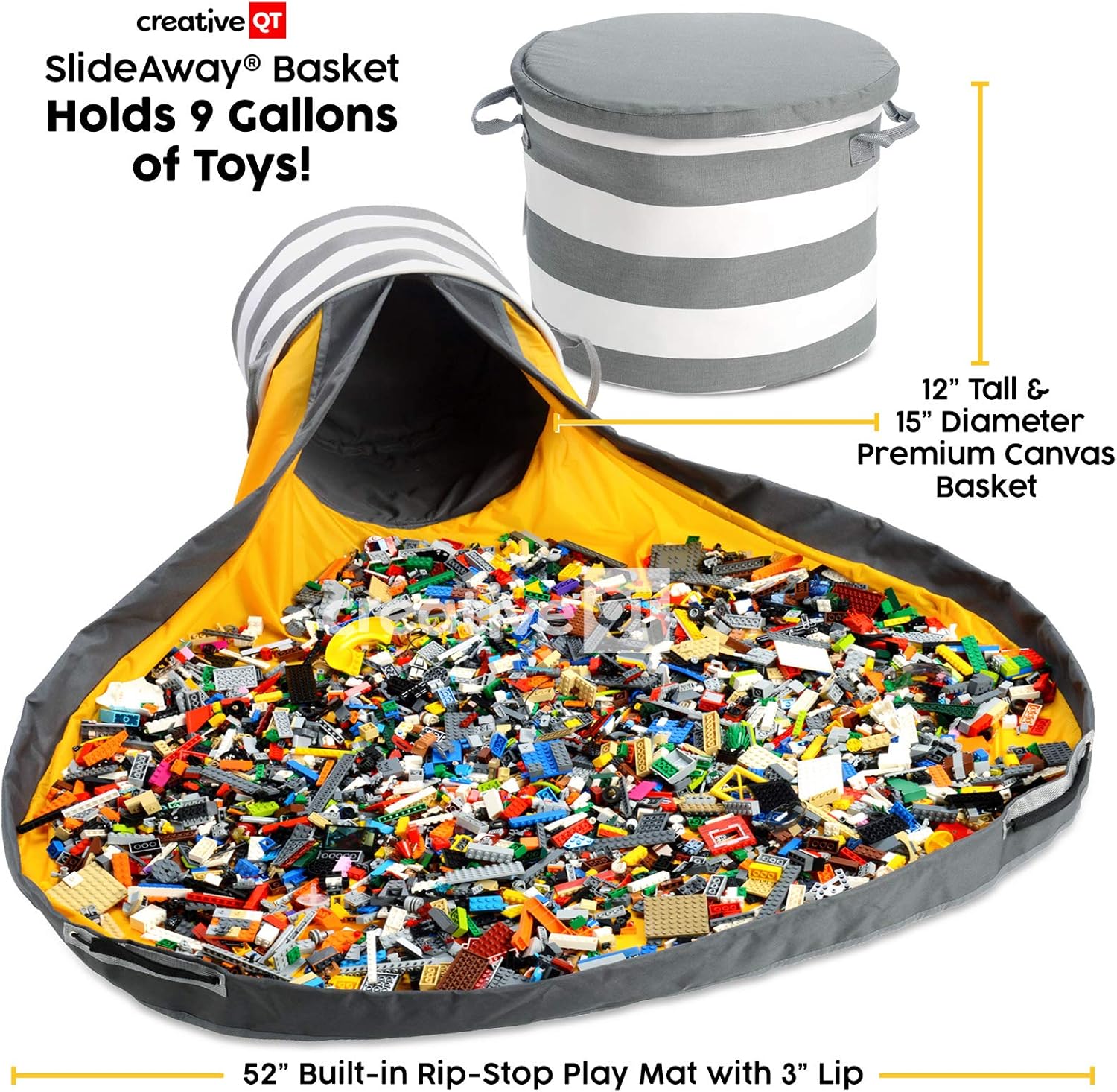 Creative QT SlideAway Toy Storage Organizer & Play Mat for Kids – Organizer Storage Bin – Kids Toy Box for Boys & Girls – Playroom Bin – Holders for Kid Rooms, Classrooms, Teachers – Grey Stripes