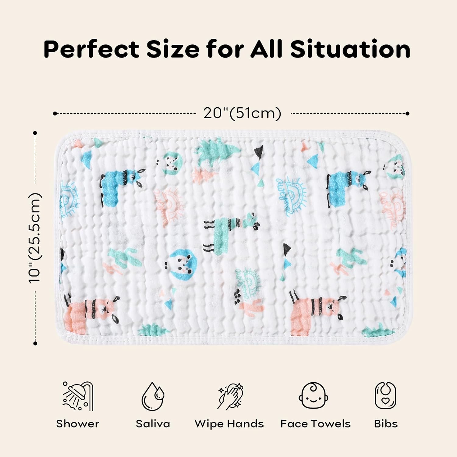 MULTI-FUNCTION – 20×10 inches, our muslin washcloths will be your favorite daily essentials as reusable baby wipes, burp cloths, baby face towels, cloth diapers, body washcloths, adult face towels and anything else that’s available. Perfect 6pcs meet your baby’s different need.