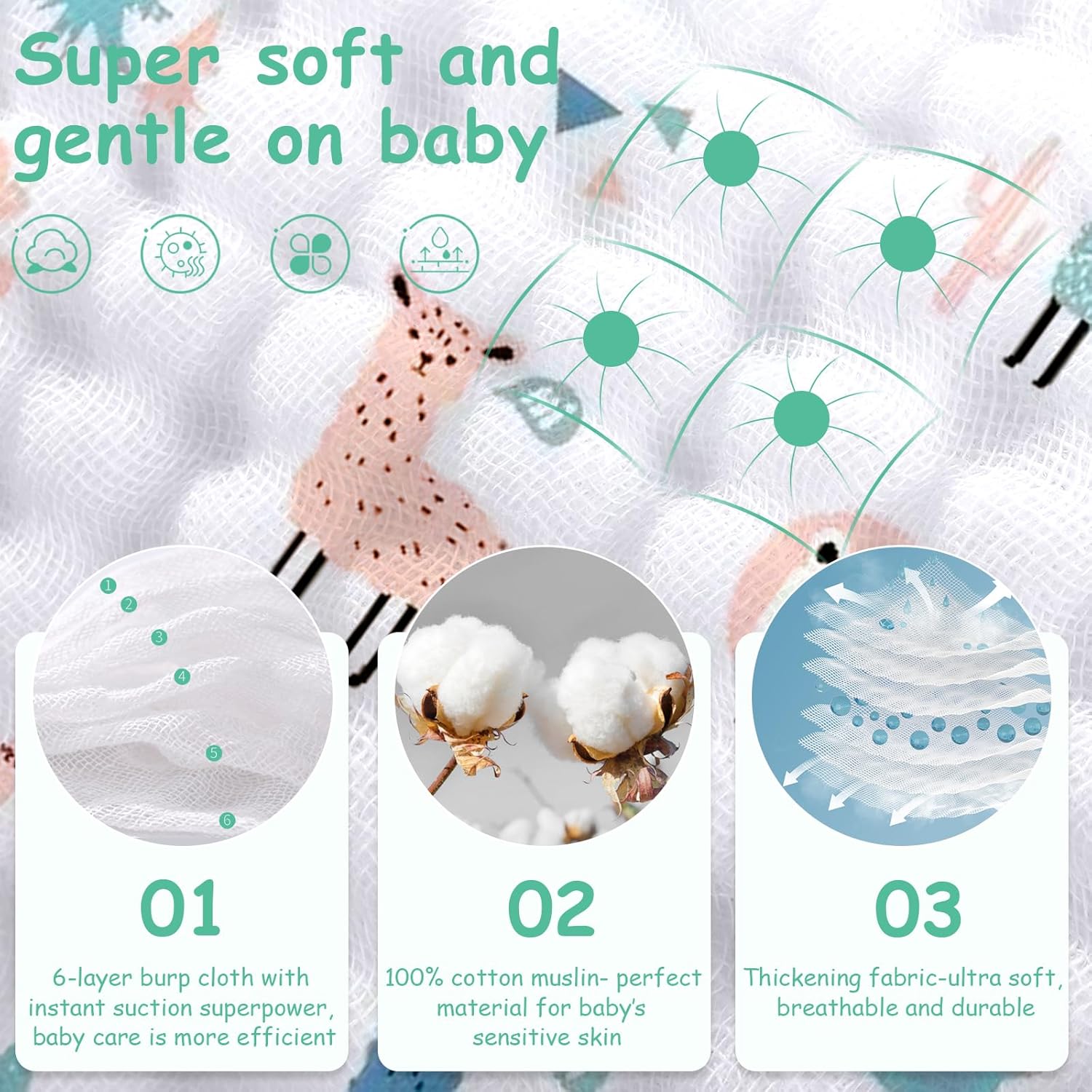 EXCELLENT ABSORBENCY – With 6-Layer thickening design fabric, these face cloths provide premium softness, breathability and durability. Soft material features its super liquid-absorbing and quick-drying nature, giving baby’s skin perfect care.