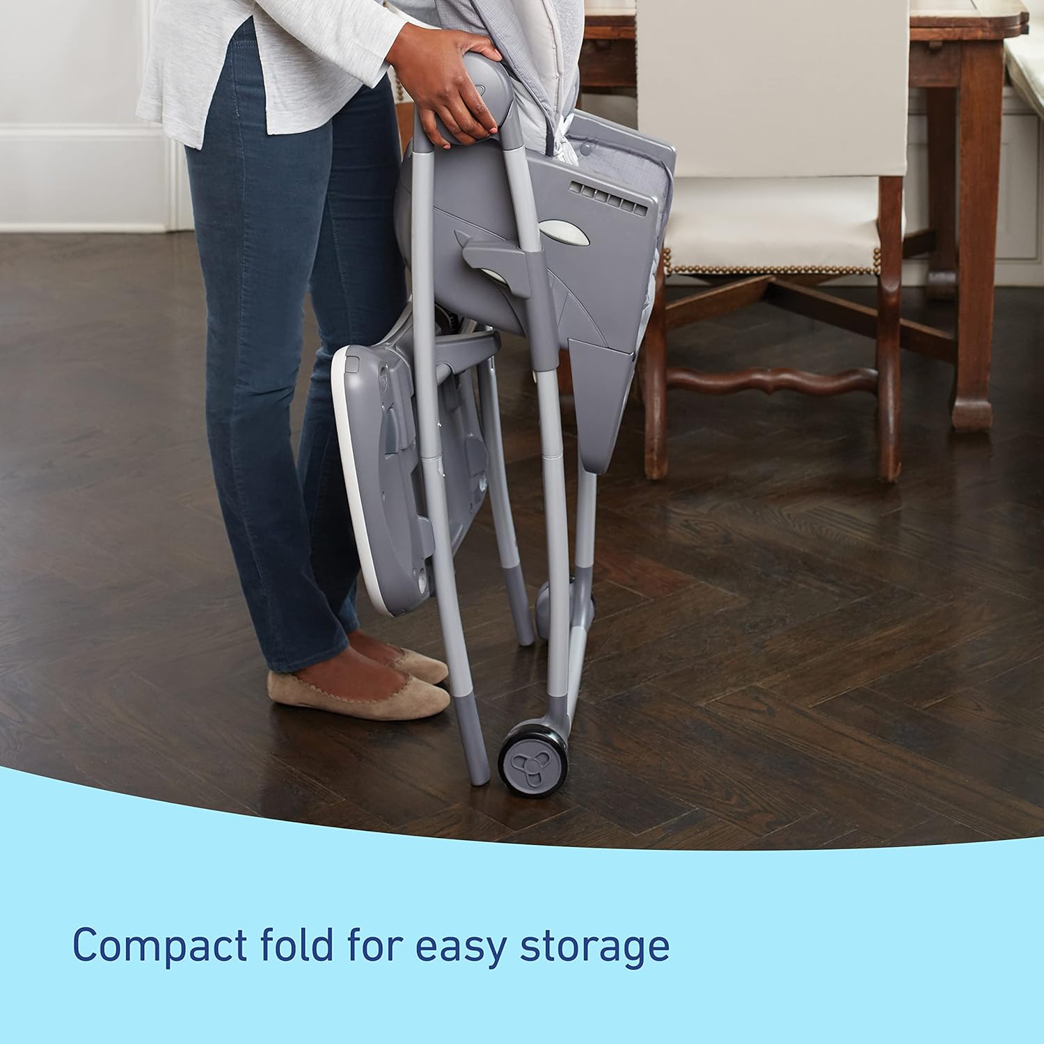 The Graco Table2Table Premier Fold 7-in-1 Highchair grows with your child from infant to toddler. The highchair features recline for early feedings, then converts to an infant booster, toddler booster, and toddler chair for baby and toddler to join the family at your table, and becomes a toddler-sized table and chair for your independent big kid. The highchair even allows seating for 2 children at once to grow with your family. The 5 height adjustments, 3-position removable footrest, and 3 recline positions ensure the most comfortable fit for baby at the family table. When not in use, the highchair folds compactly for storage.