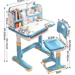 The height of the desk and chair can be adjusted, desk height from 37.4″- 39.8″ and chair from 24.8″-27.2″, you can adjust the height of the table and chair according to the height of the child, accompanied by their growth for long-term use.