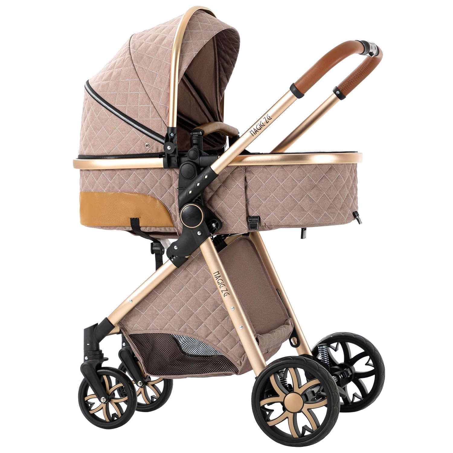 【Multifunctional 2 in 1 Baby Stroller with Bassinet】 By effortless adjustments, the 2 in 1 baby stroller with bassinet can be easily converted and it can play multifunctional roles, which can fully meet different needs of baby.