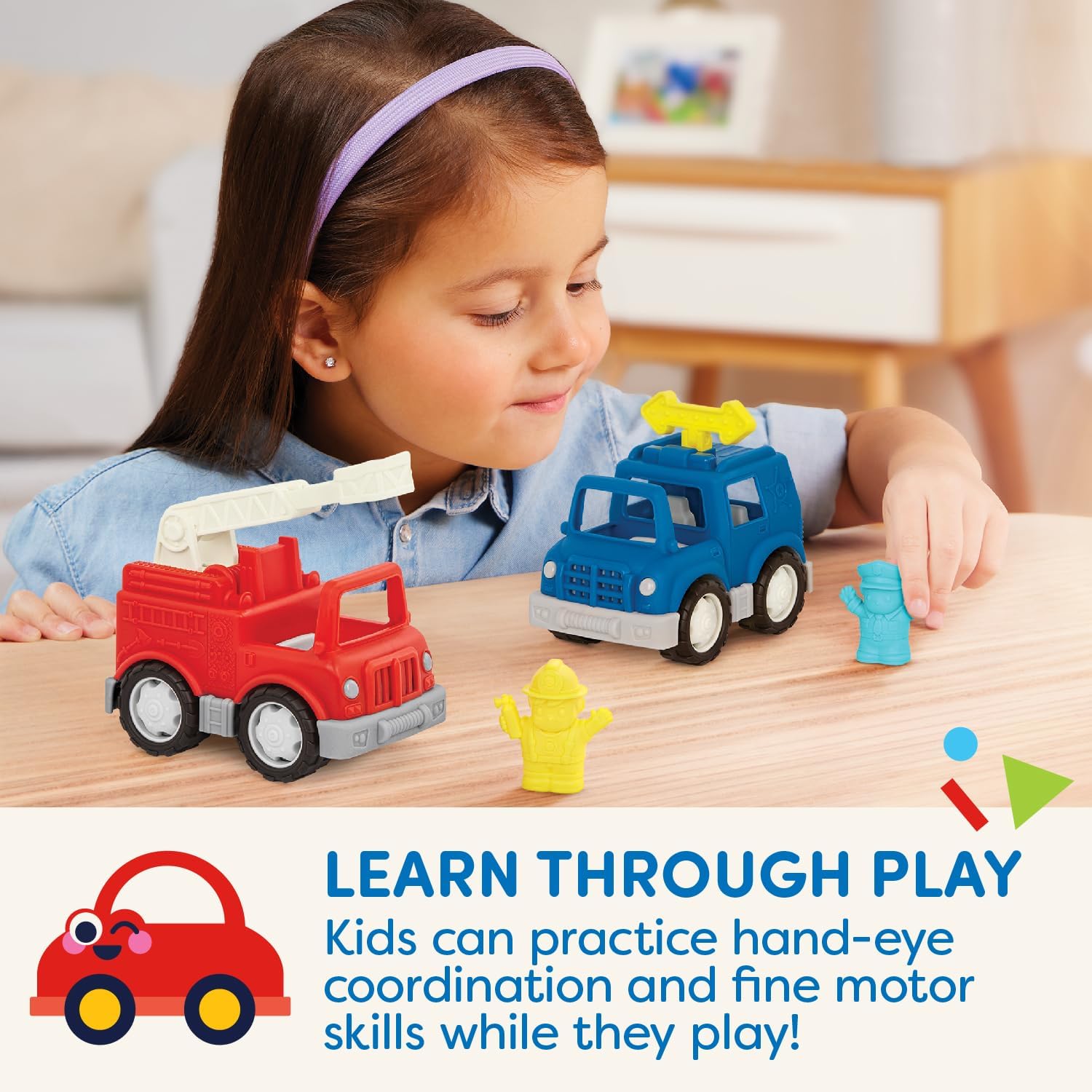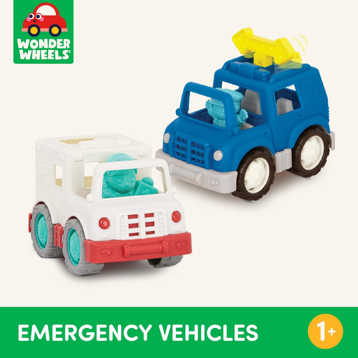 Roll to the rescue with this trusty trio of toy emergency vehicles. This combo includes an ambulance, police car, and fire truck, so little heroes can be ready for anything! Each vehicle comes with movable parts that bring make-believe scenes to life: open the doors, raise the ladder, and flip the sign up to give citizen directions and keep everyone safe. Kids will also find 3 colorful figurines that fit right into the driver’s seat, perfect for creating pretend play scenes that are a great way to practice social skills and develop creativity! Remember to stay DRIVEN because the crew depends on you!