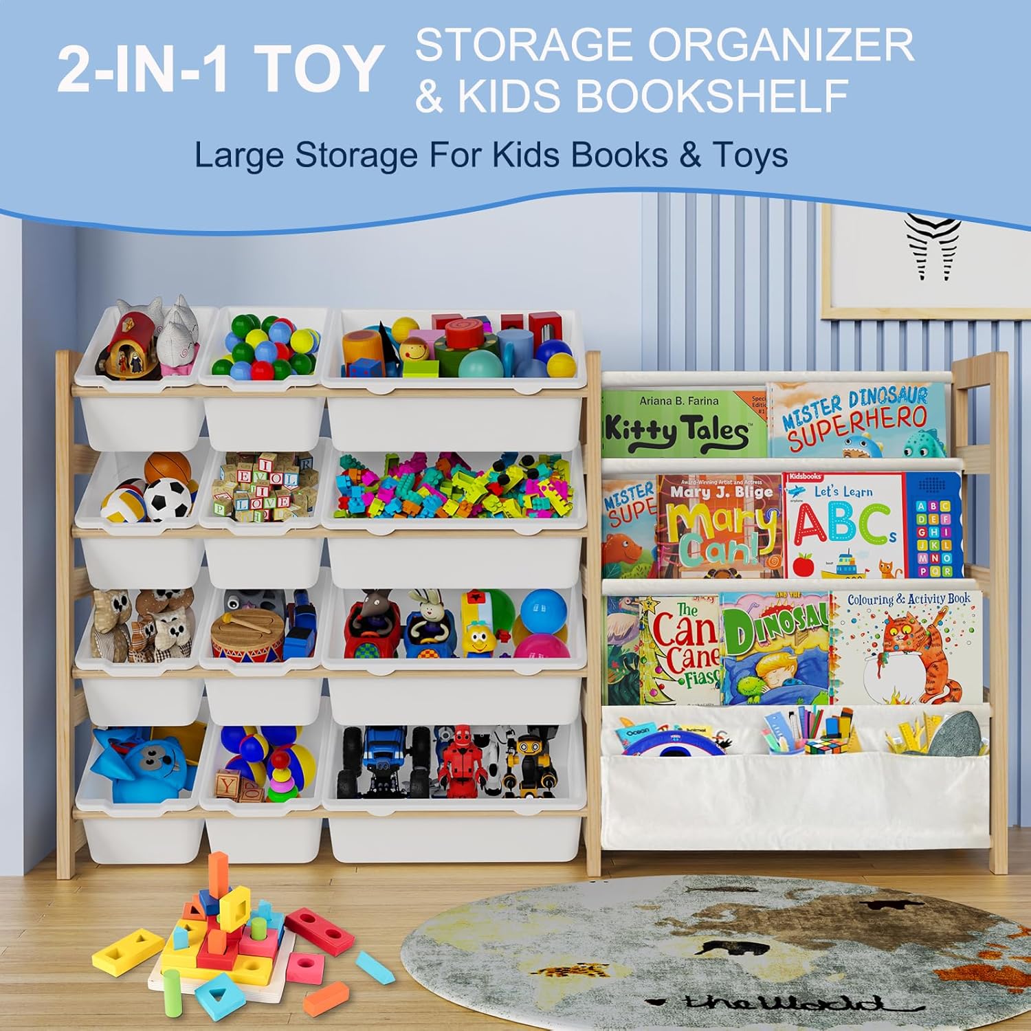 Large Toy Storage Organizer with 12 Toy Bins, Toy Organizers and Storage with 4 Tier Bookshelf for Kids Room, Playroom, Nursery Room