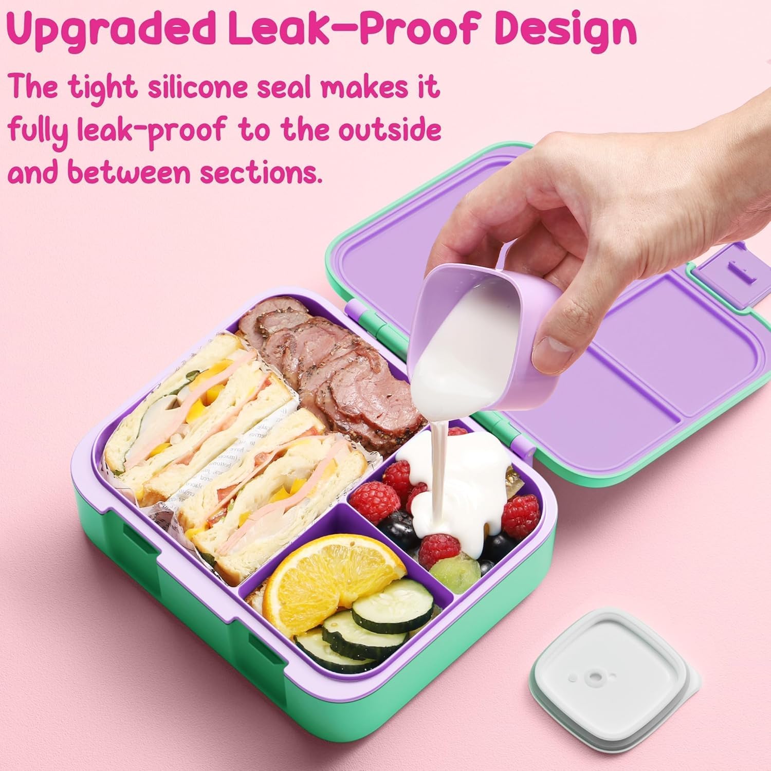 Premium Bento Lunch Box: 32 Oz Bento lunch box for kids has 3 Compartments to ensure keep food separate and prevent food from mixing flavors. Perfect lunch size for main meal, fruits & snacks. An extra sauce jar for yogurt, houmous/salad dressing. Removable silicone seal is designed to ensure 100% leak-proof. Removable seals & tray, sauce jar are top rack dishwasher safe ( under 80℃) & freezer safe, and its food tray is microwave safe. Drop-proof shell is durable, sturdy and not easy to break
