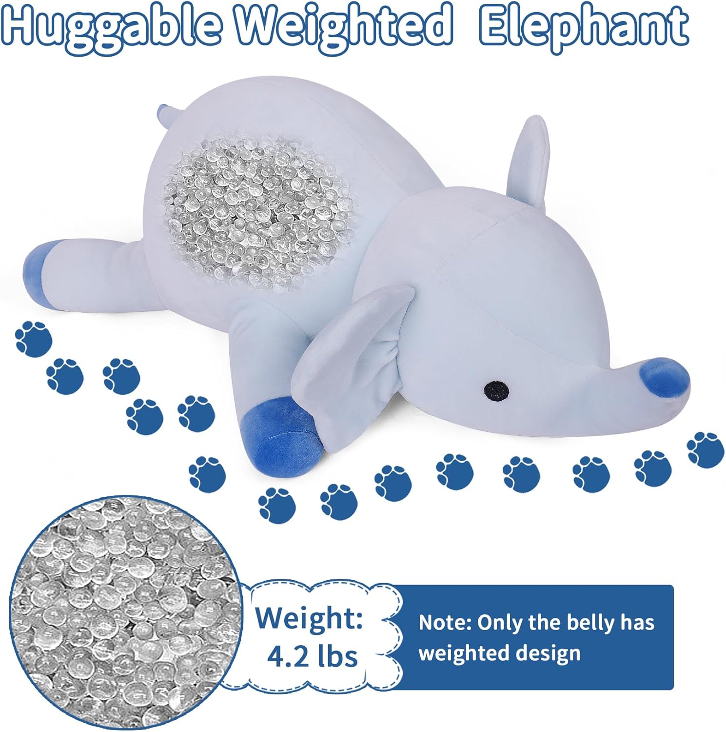 【WONDERFUL GIFT】If your friends or children enjoy the soft and cuddly feel of plush toys, don’t miss out on this cute and cozy weighted elephant. Both adults and children will appreciate the comforting weight of this plush toy. It offers just the right amount of calming weight without being overly burdensome to carry around.