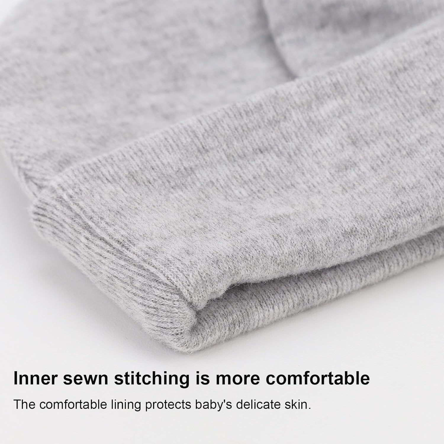 The baby hat with no zipper, and no velcro to protect the baby’s head. These infant hats have a good elasticity that stretches moderately.