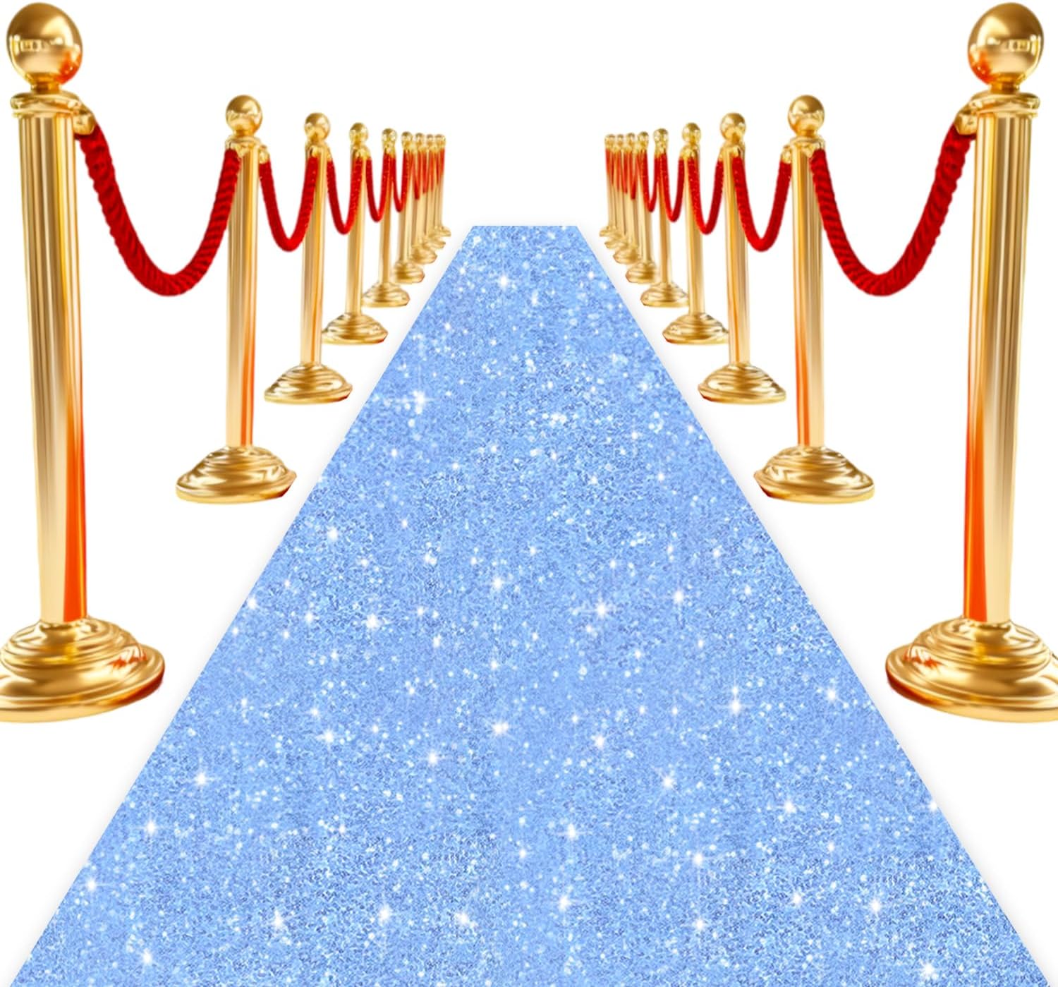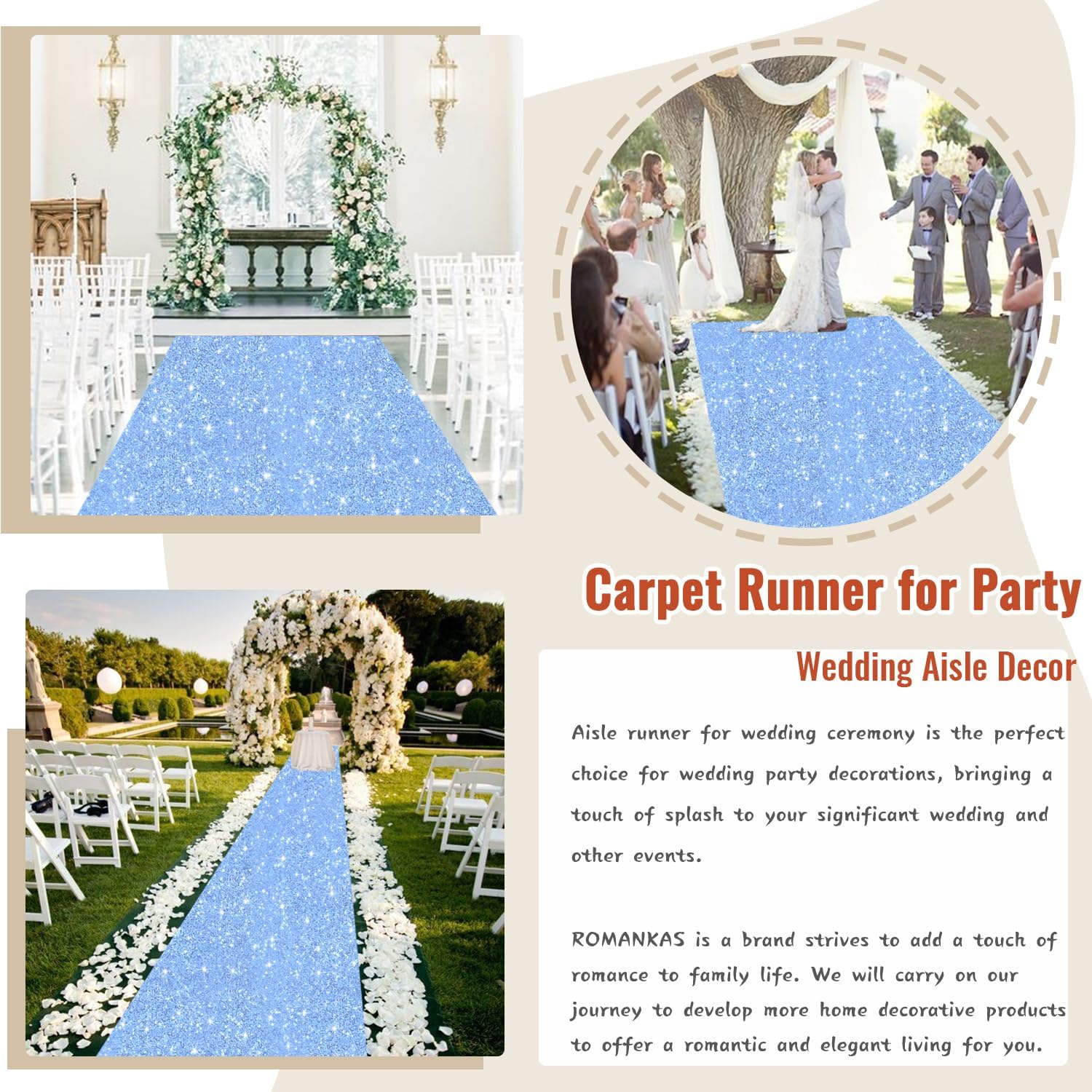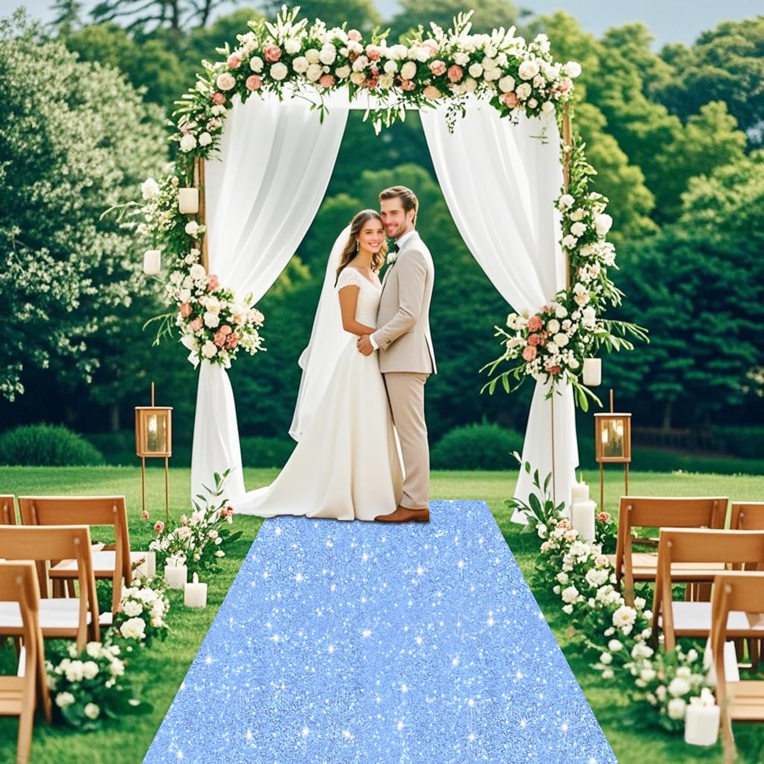 👑Size & Color — Aisle Runner for Wedding: Package includes 1pc 4ft(48 inch) wide by 20ft(240inch) long baby blue sequins aisle runner. The bling carpet runner bring a touch of sophistication to any event, enhancing the overall décor of event.