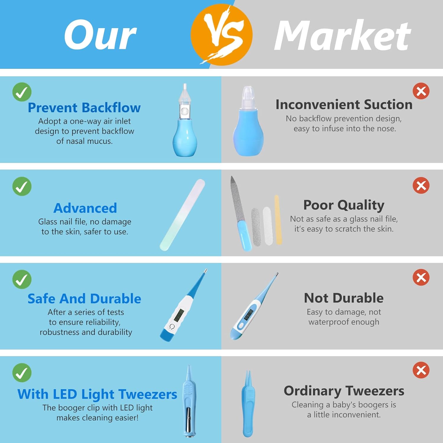 【WHY CHOOSE US?】We are very confident that the revised baby healthcare and grooming kit will definitely satisfy you, and you are welcome to compare it with the styles on the market! It has everything you need for your new little one and each item is well built!