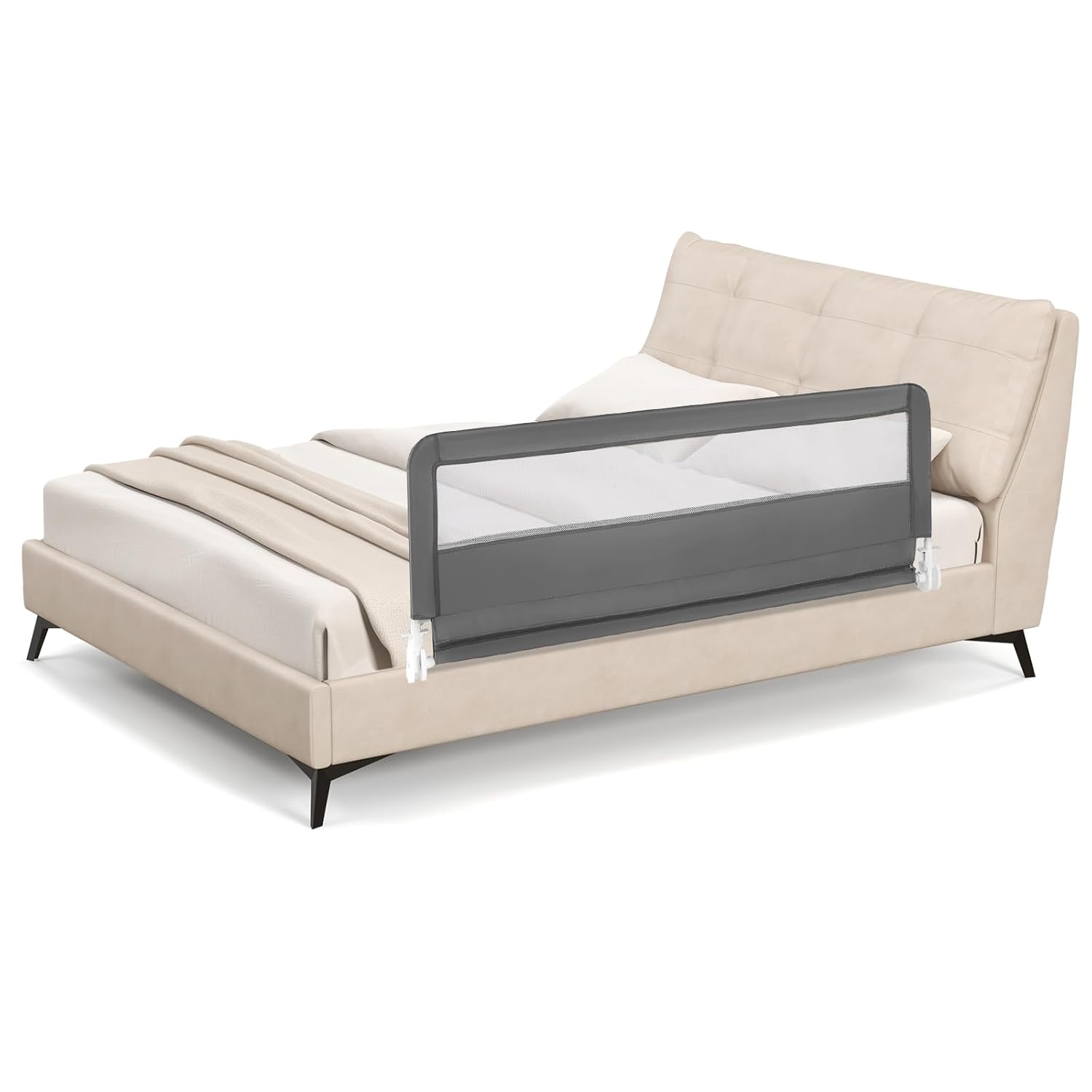 [ Bedtime Safety for Grow-up Children ]: Our bed rail is specially designed for babies transforming from cribs to normal standard beds. It is designed in a perfectly proper height to protect your children from rolling over the bed and get injured accidentally. Meanwhile, the bed guardrail comes with a lightweight anchor system to reinforce the safety.
