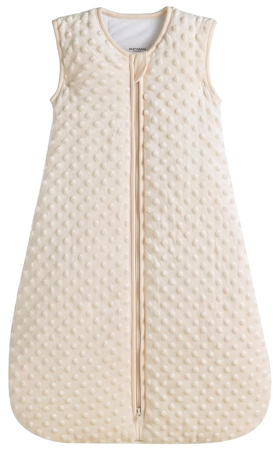 HIGH QUALITY: This is a very warm 2.5 Tog Winter Model baby sleeping bag for room temperatures below 70 F. Minky Dot outer shell and 100% Jersey cotton inner lining. High quality YKK snaps and zippers. Please follow our sizing chart. The large size will not fit unless your toddler is at least 24 months old.