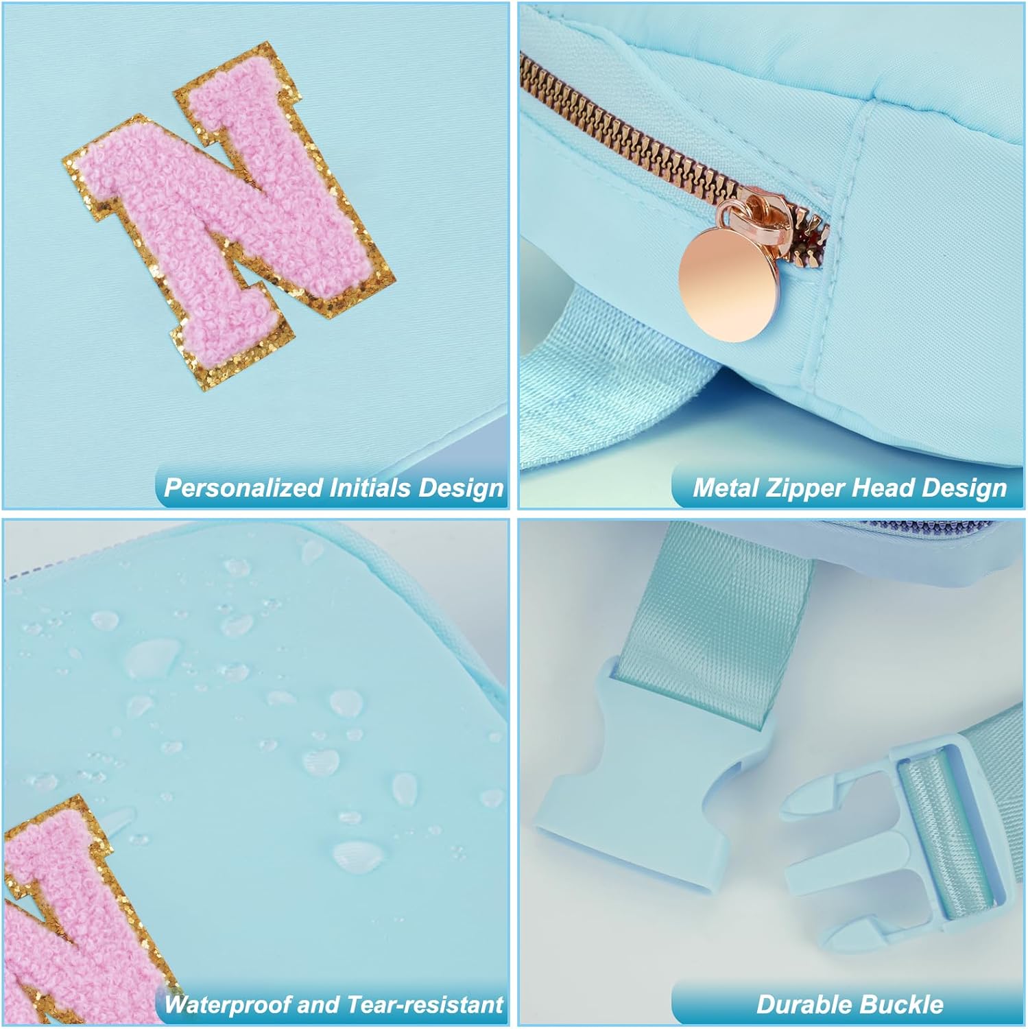 HIGH QUALITY MATERIAL:Made of waterproof nylon material,but please do not immerse it in water.This fanny pack is designed with a round metal zipper head and personalized initials for a stylish and elegant look