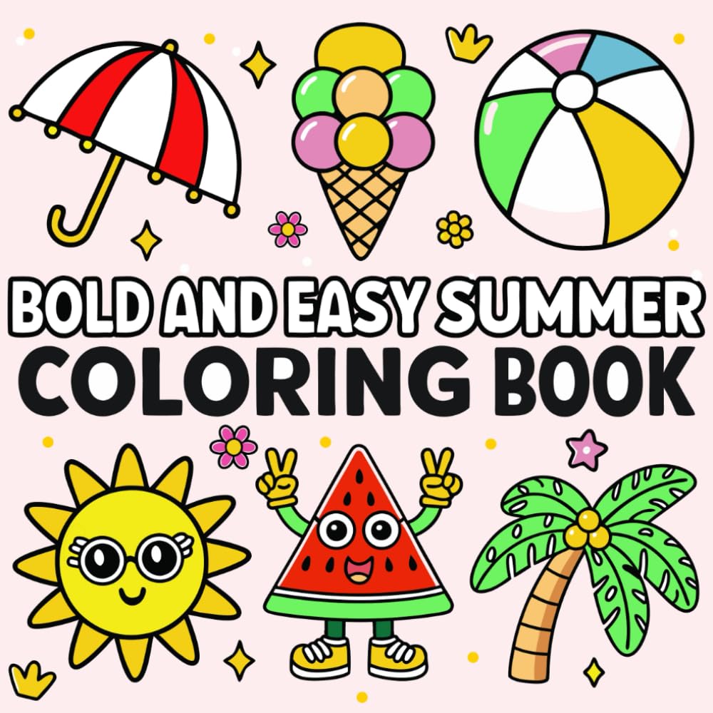 Unwind with a collection of cheerful, easy-to-color summer scenes! Perfect for kids, teens, and adults, this book features bold lines and cute designs that make coloring fun, relaxing, and mess-free.