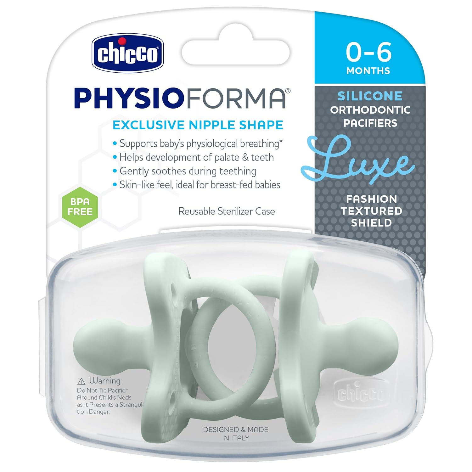 Parents love that PhysioForma pacifiers were developed, tested, and approved in partnership with an advisory panel of leading neonatologists, pediatricians, and orthodontists. The exclusive nipple design helps position the tongue forward to maintain an open airway and support baby’s physiological breathing. This is especially important at bedtime where it can help improve sleep quality and reduce irritability.