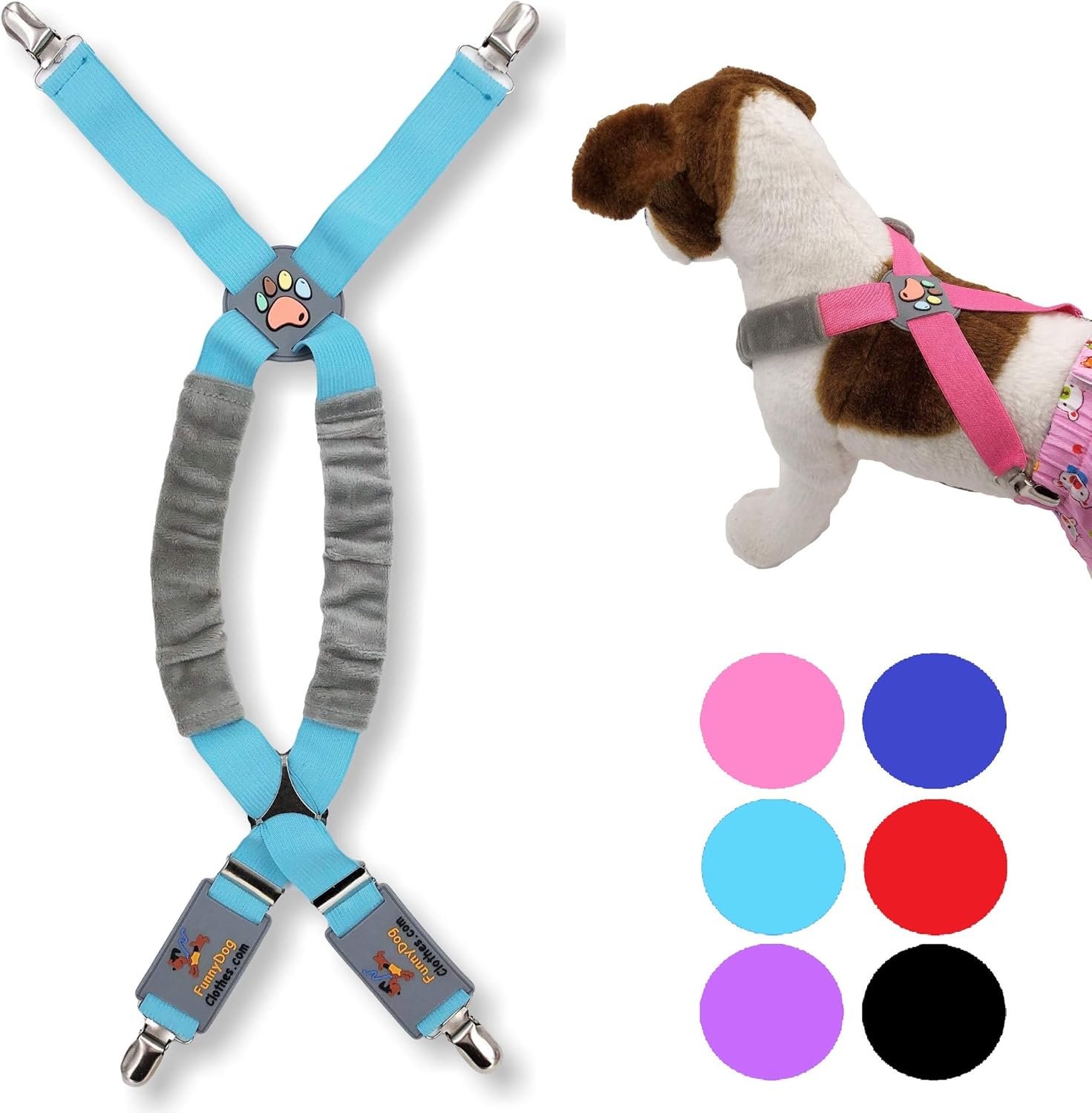 HIGH QUALITY- Suspenders are made of high-quality fabrics to adjust and stretch as your pet needs. Fasteners include plastic grips for the perfect attachment on any type of material.