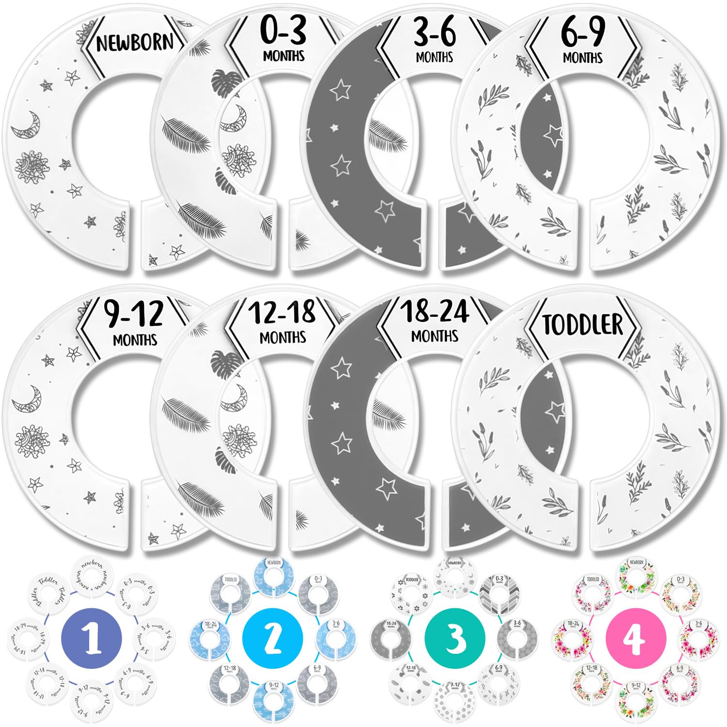 SET OF 8 SIZES – We offer the largest set of sizes with 8 closet dividers for baby clothing. They cover ages from newborn all the way up to toddler, so we’ve got all of your organizational needs covered for the first two years and more!