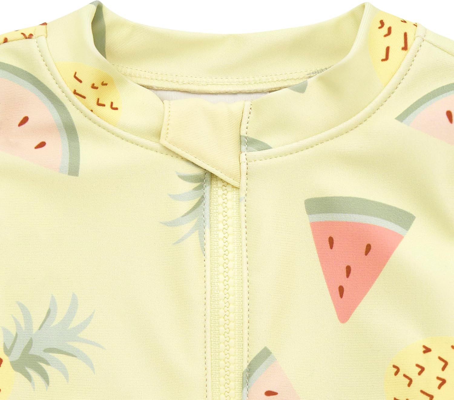 Customers love the swimsuit’s beautiful print and find it well-made with good material quality. Moreover, the long sleeves provide excellent sun protection, and they appreciate that it’s easy to put on and off. However, the sizing runs small, and while some find it easy to put on and off, others disagree. Additionally, the swimsuit lacks bottom snaps for diaper changes.