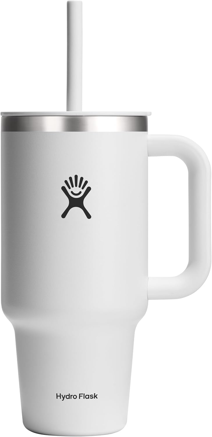 32 OZ WHITE TUMBLER: The insulated Hydro Flask 32 ounce Travel Tumbler cup with easy flow straw is here to hydrate more and refill less. The insulation keeps drinks cold and the durable handle takes it to the next level. This stainless steel tumbler can go anywhere, even fitting most cupholders. Cold stays cold, and the flexible straw is easy to sip any which way.