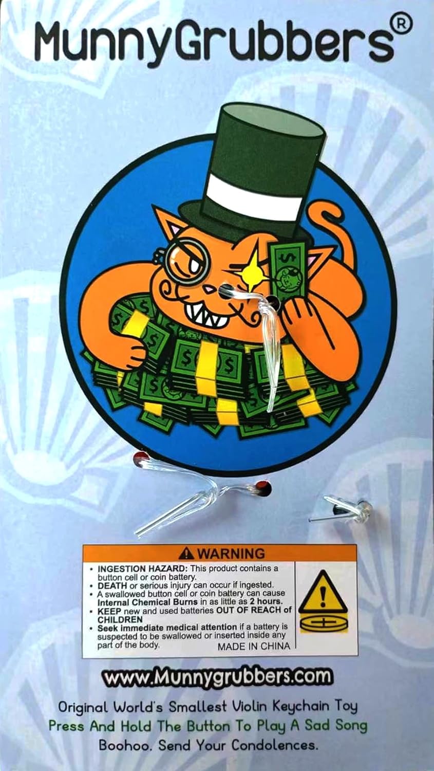 An Amazon best-seller, and as made famous on TikTok, the original World’s Smallest Violin keychain toy is the funniest way to send your friends your condolences. The miniature toy instrument is immediately recognizable as a funny gift idea for friends and family alike. The miniature toy instrument’s signature sound holes, purfling, tail piece, bridge, and strings are all formed by unique, raised ridges. The tiny toy instrument’s unique obtuse shape stands out alongside its concave ribs. Consumers agree, there is nothing else like it on the market!