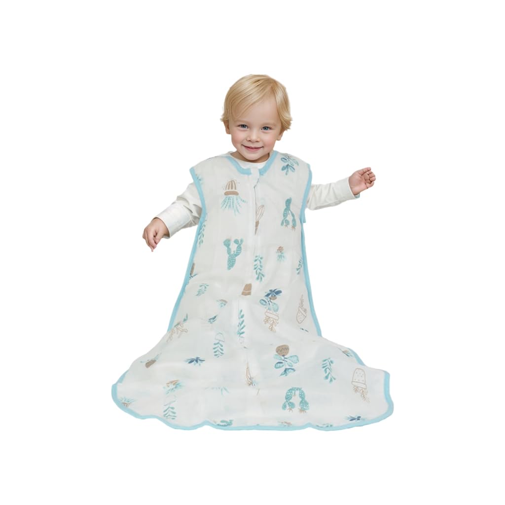 This toddler sleeping sack muslin is lightweight and thin, with a 0.5 Tog rating ideal for warmer climates, ensuring comfortable sleep during summer. Designed for year-round use, it pairs well with different clothing options, preventing overheating while providing cozy sleep.