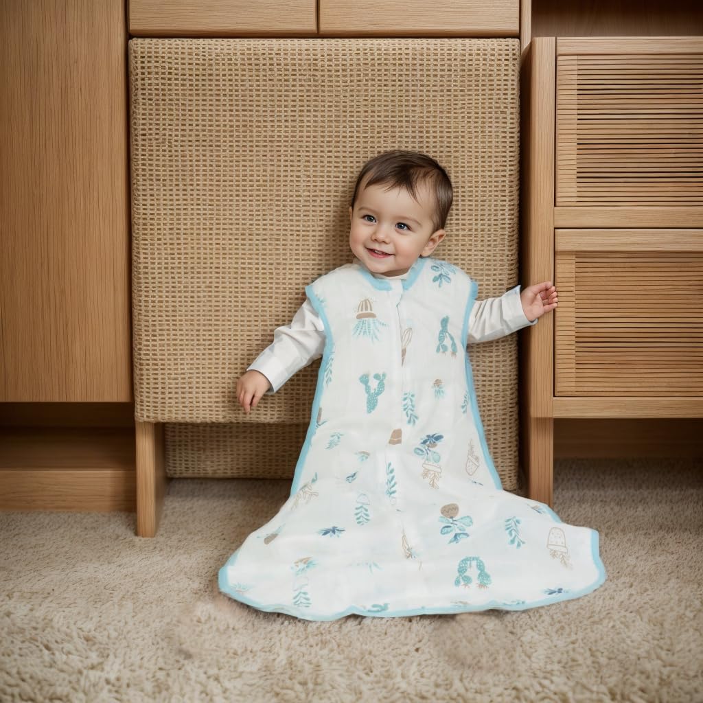 Ultra-Light & Breathable Muslin Sleep Sack (0.5 TOG) – Baby Sleeping Bag for Warm Weather – Soft, airy fabric perfect for year-round comfort.