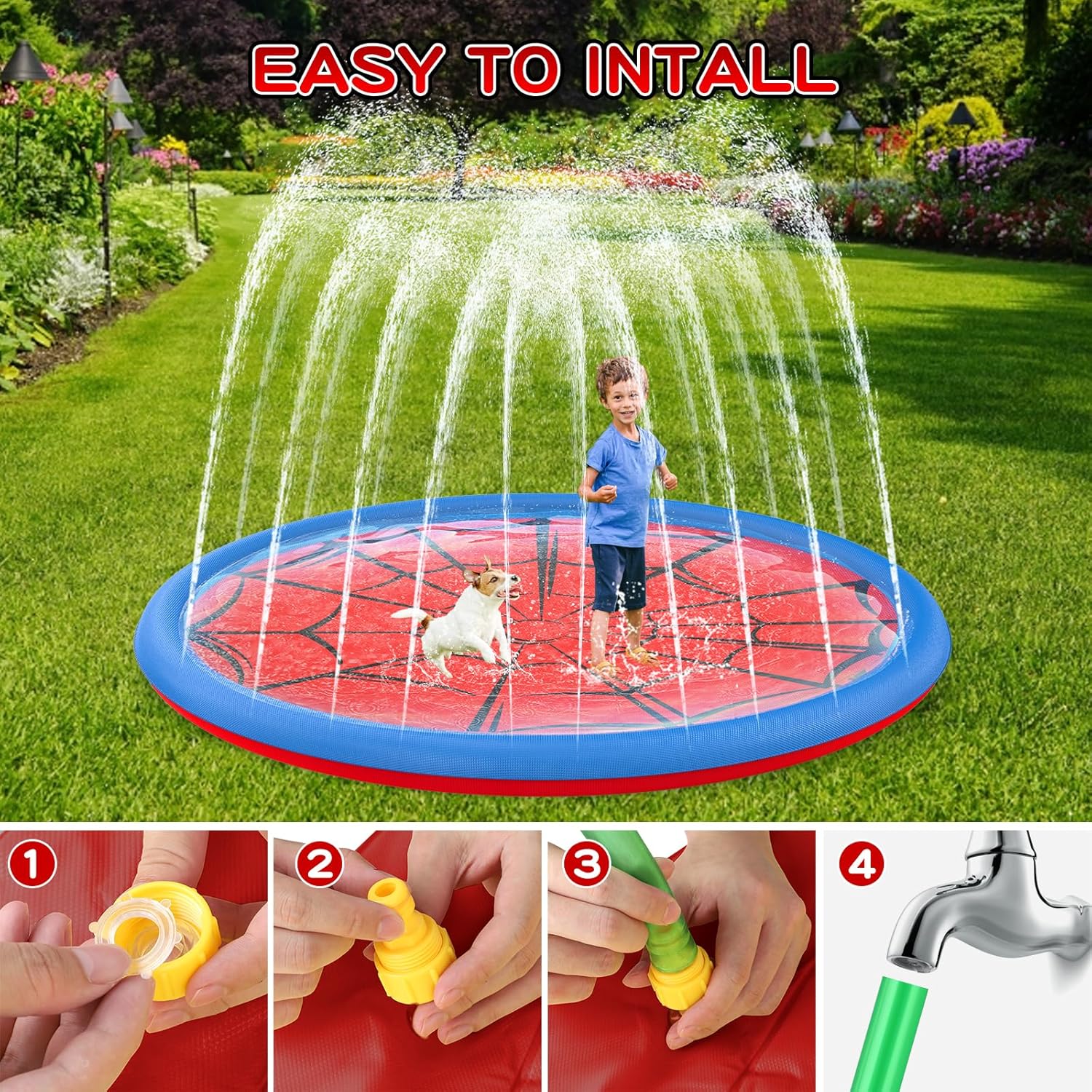 Non Slip and Fun Water Party – Say goodbye to slips and falls with Betheaces non-slip surface! Grab your kids and dogs, and get ready for endless hours of fun in the Sun! The water spray can go high or low by adjusting your garden hose.
