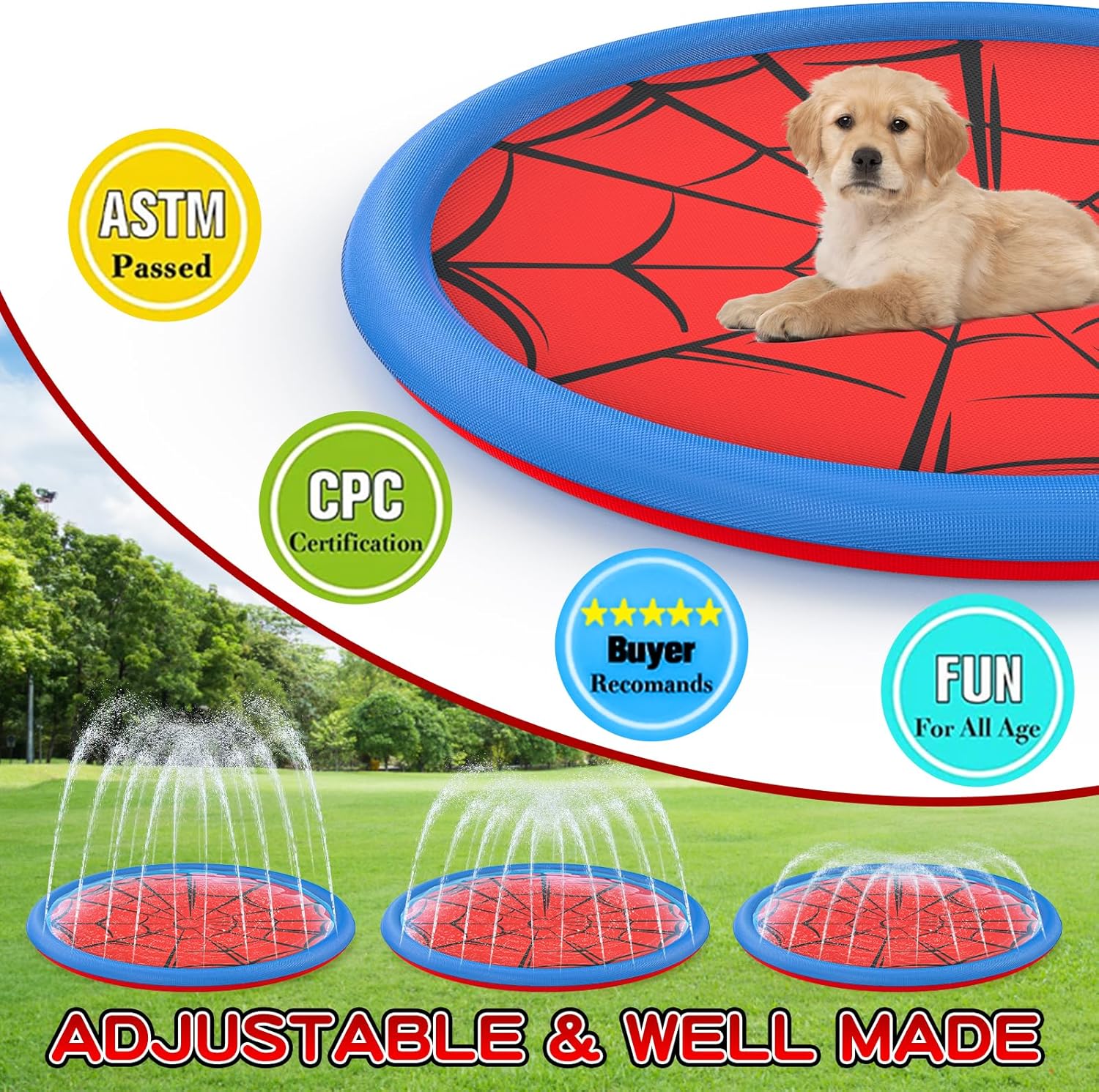 87” Extra Large Size Splash Pad – The extra large 87-inch sprinkler splash pad is accommodate more of your pets and family members. It can create happy times for your kids and pet on a hot summer day.