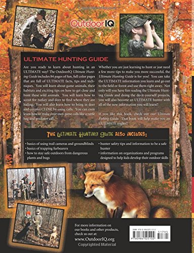 Are you ready to learn about hunting in an ULTIMATE way? The Outdoor IQ’s Ultimate Hunting Guide Just for Kids includes 84 pages of fun, full color pages that are full of ULTIMATE facts, tips and techniques. You will learn about game animals, their habitats and exciting tips on how to get close and hunt these wild animals. You will learn how to scout for turkey and deer to find where they are hiding. You will also learn how to bring in deer and coyotes close by using calls. You can even learn how to make your own game calls like a rattle bag and predator call. The Ultimate Hunting Guide also includes: • basics of using trail cameras and groundblinds • basics of trapping furbearers • how to stay safe outdoors from dangerous plants and bugs • hunter safety tips and information to be a safe hunter • information on organizations and programs designed to help kids develop their outdoor skills Whether you are just learning to hunt or just need a few more tips to make you more successful, the Ultimate Hunting Guide is for you! You can take the ULTIMATE information you learn and go out to the field or forest and use them right away. Not only will you have fun reading the Ultimate Hunting Guide and doing the do-it-yourself projects, you will also become an ULTIMATE hunter with all of the new information you will learn!!