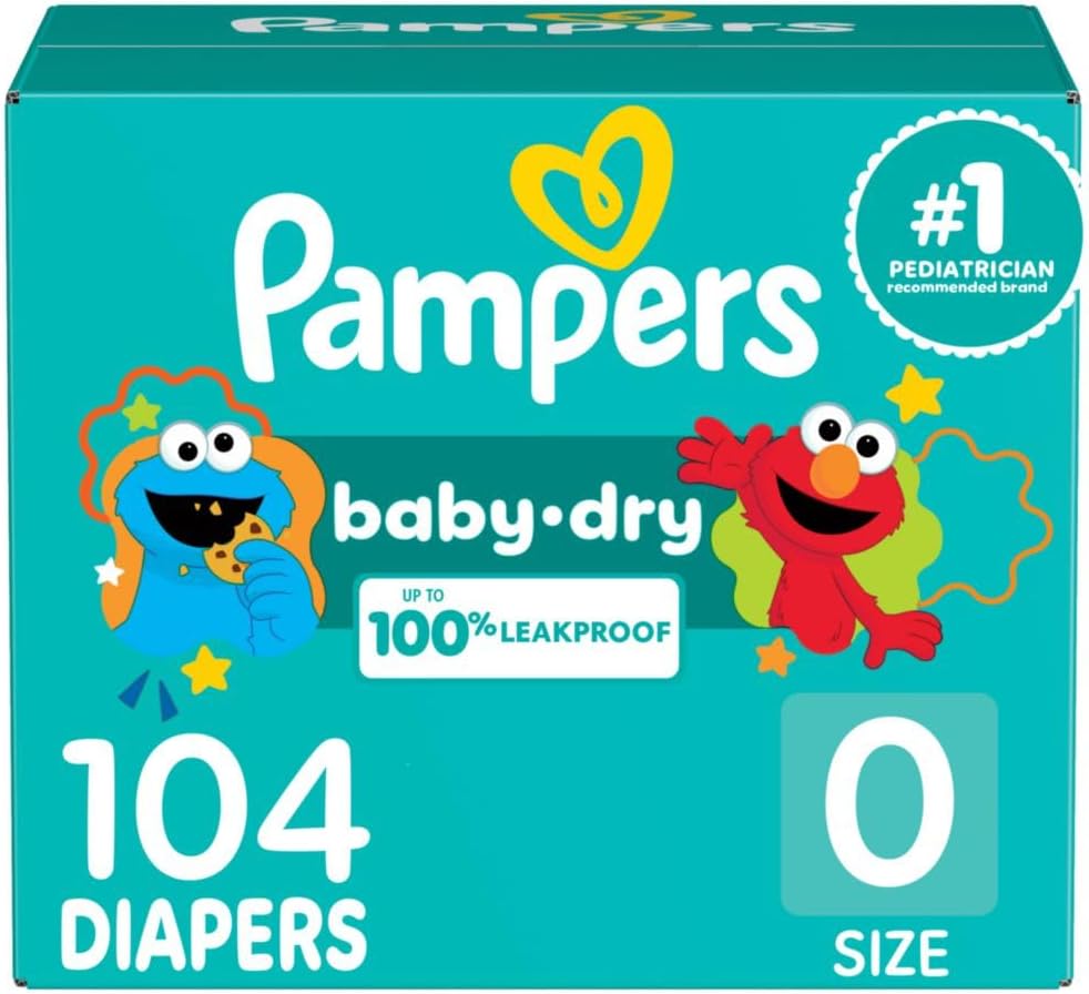 Pampers Diapers – Baby Dry – Size 0, 104 Count, Absorbent Disposable Newbort Diaper (Packaging May Vary)