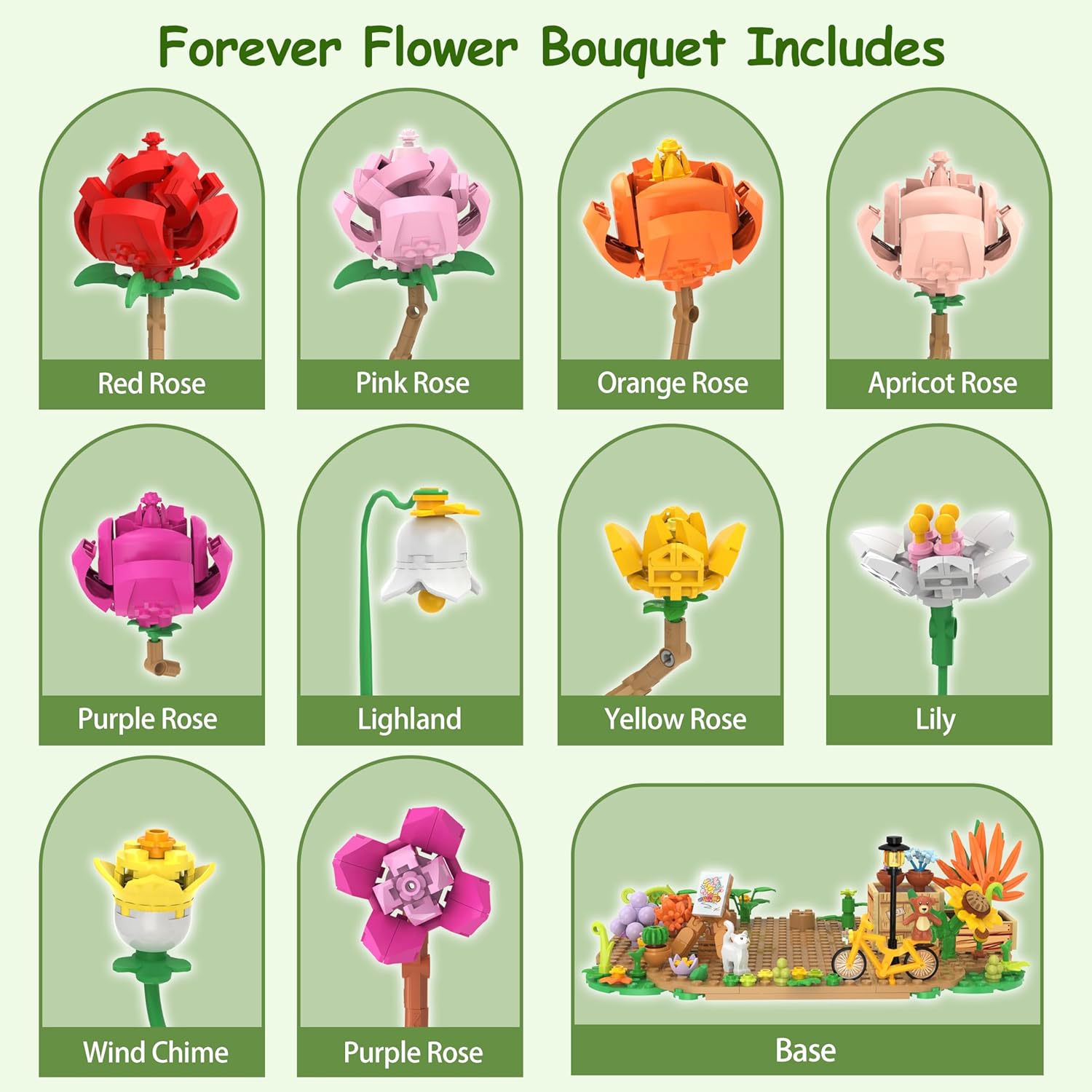 【Enjoyable Assembling & Beautiful Decoration】: We assemble building kit easily followed by the paper instruction, it’s easy to finish. After build this Flower bouquet building kit into the base, it can be used for home decoration. The beautiful bouquet with base is a long-lasting decoration with fantastic flowers that will make any occasion brilliant. Perfect flowers gifts and never fades roses for women.