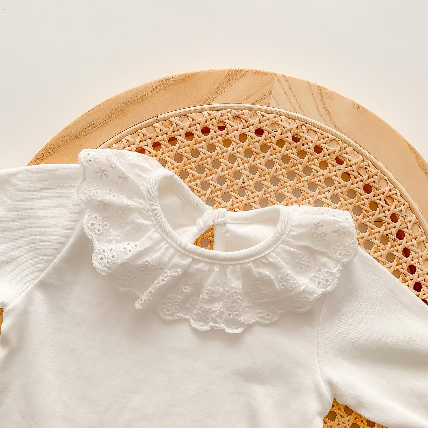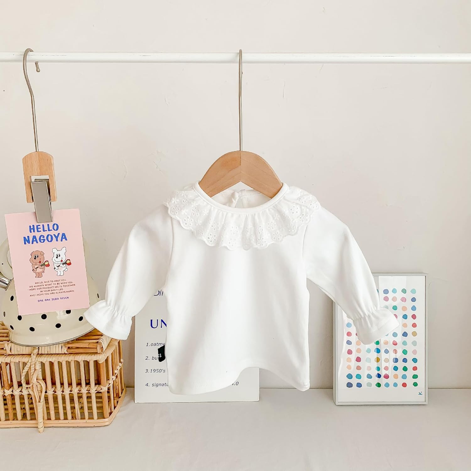 Baby girl’s blouse solid color long sleeve peter pan collar T-shirt kids basic shirt bottoming top fits for 1-6 Years kids girls ; suitable for daily wear,school uniforms etc.