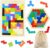 Colorful Wood Learning Puzzles: Bright colors and simple design are perfect for inspire any imagination; Russian block puzzle contained 40 pcs parts with reasonable sized board (Length: 10.6″ Width: 7″), Learning hexagon puzzle have 14 pcs different shape blocks to make a terrific brain puzzle