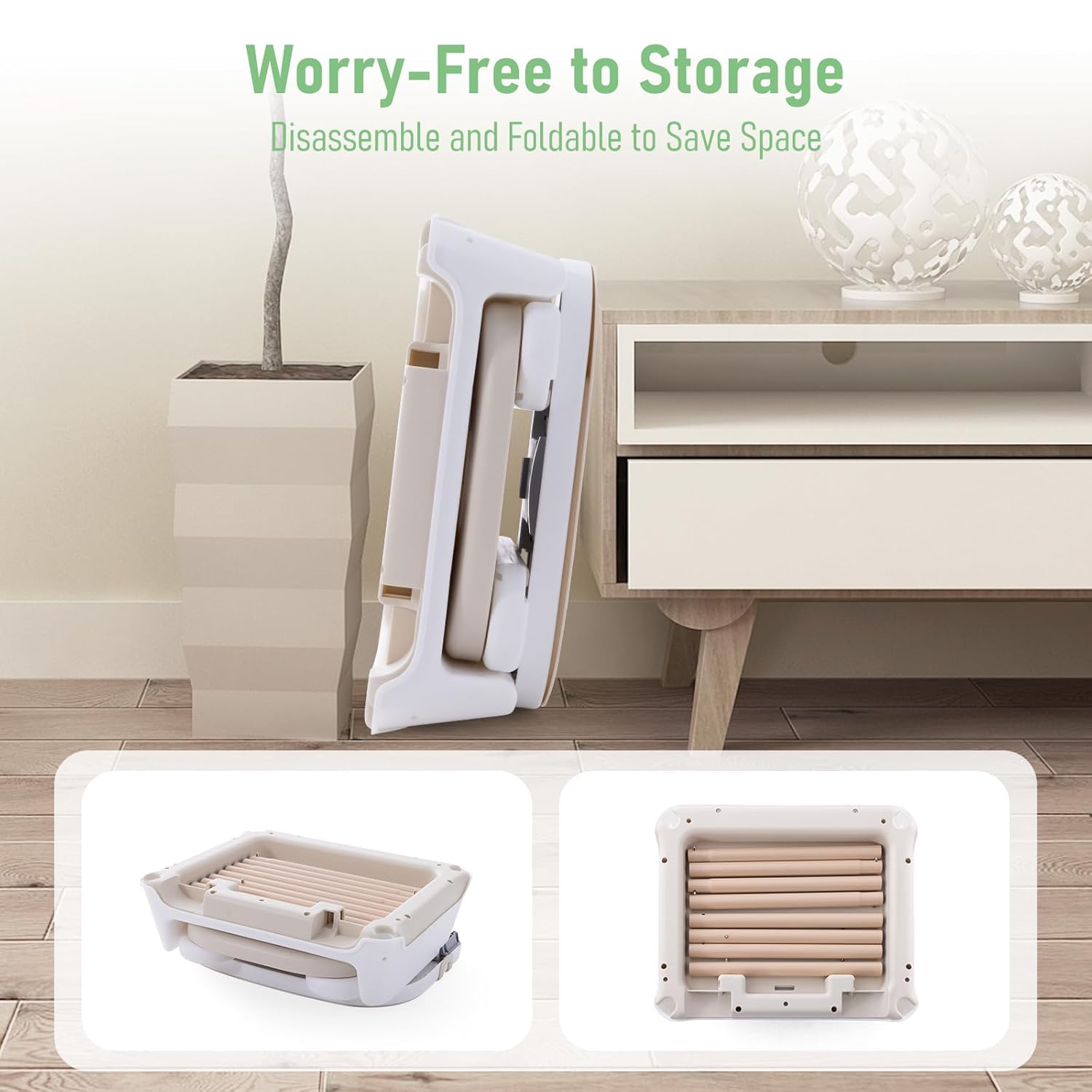 🌻Space Saving Highchair Storage: The high chair is easy to install and uninstall, a process that takes only a few seconds. The bottom part is where the legs were secured in. And you can put them right back in there if when not in use. That makes it a perfect choice for limited places or when you need to take a baby chair on travel.