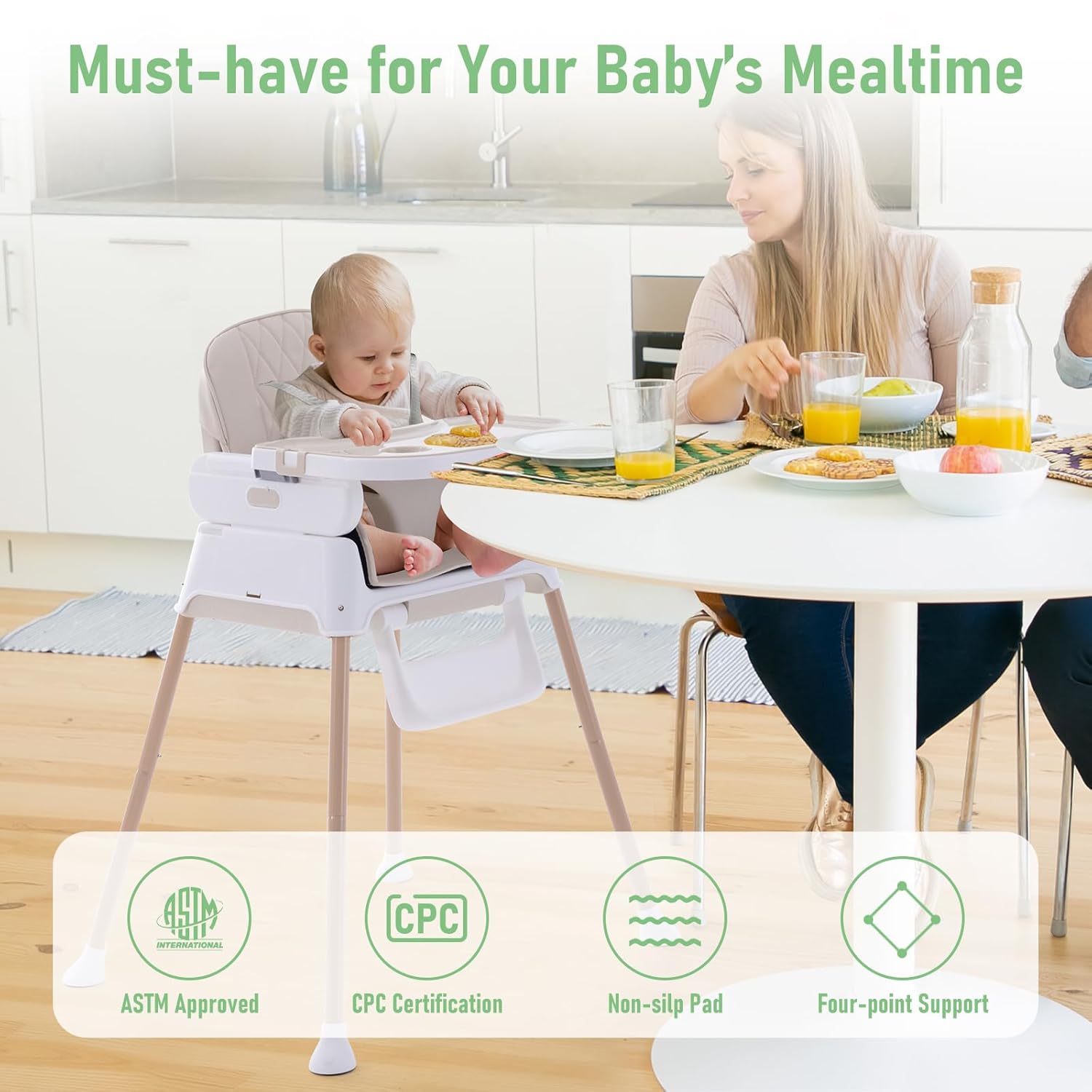 Jaoul baby high chair has 3 modes to use, babies and toddlers playing, eating, and relaxing on the high chair at any time where.