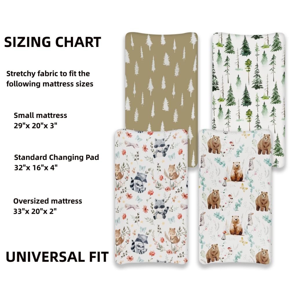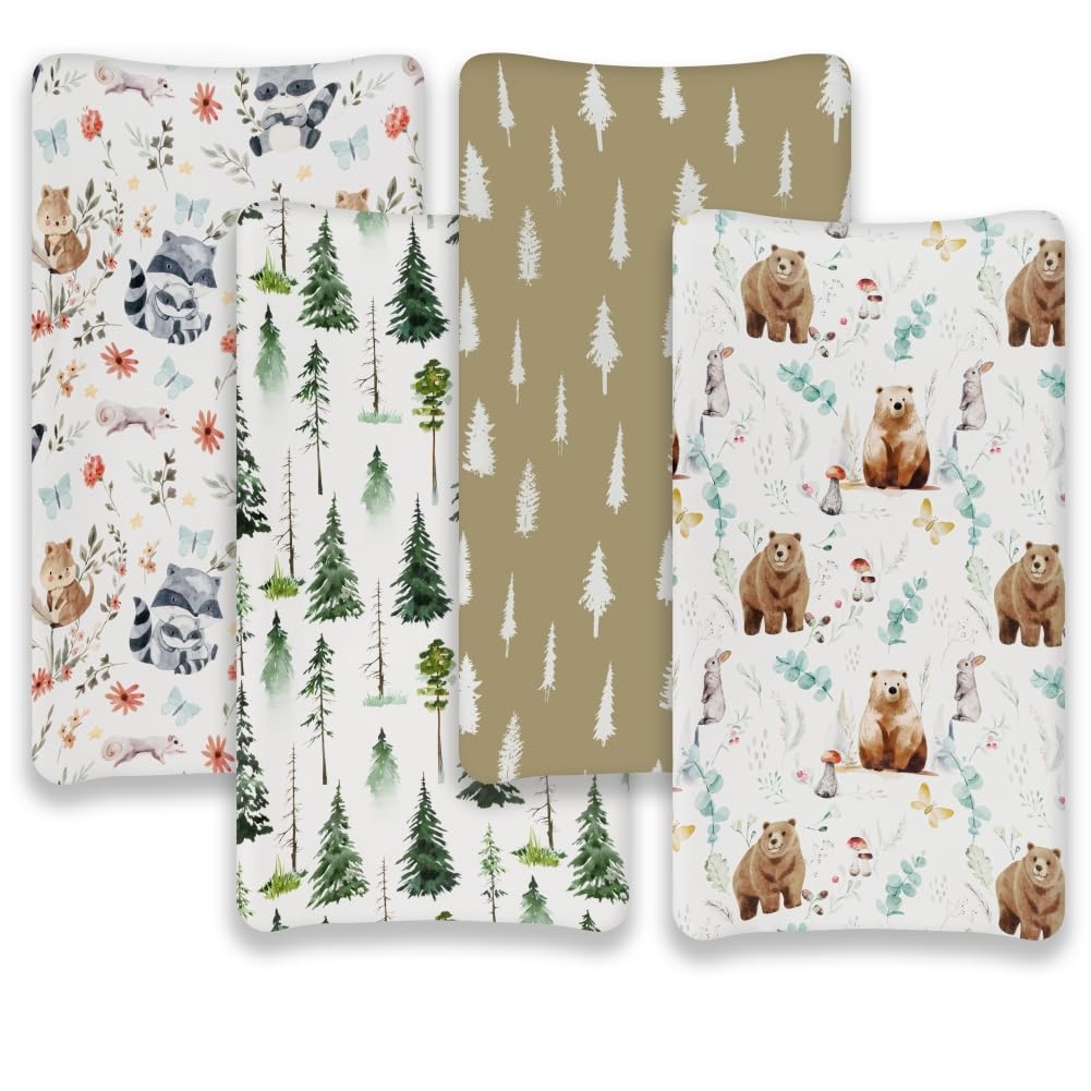 4 PACK VALUED SET: All kinds of sheets set included 4 pack woodland sheets with different patterns. Enough sheets to replaces once accidents happen. And save your money through buying 4 pack crib sheets as a set