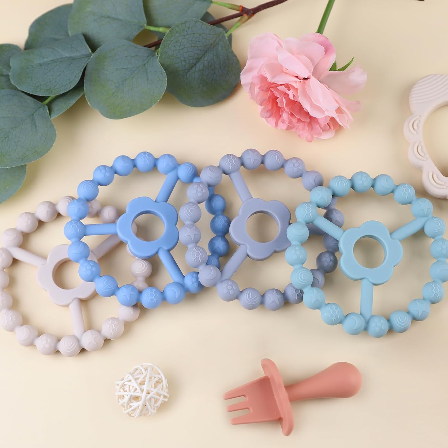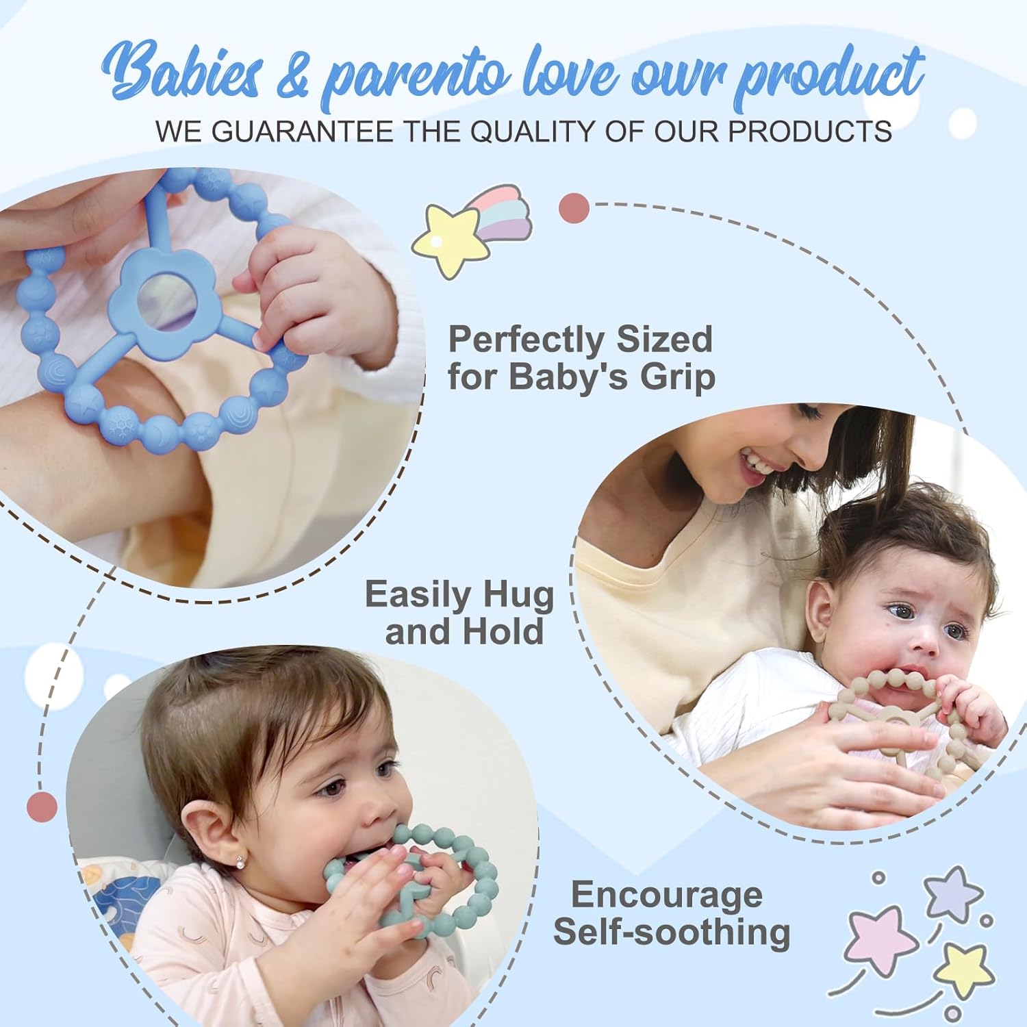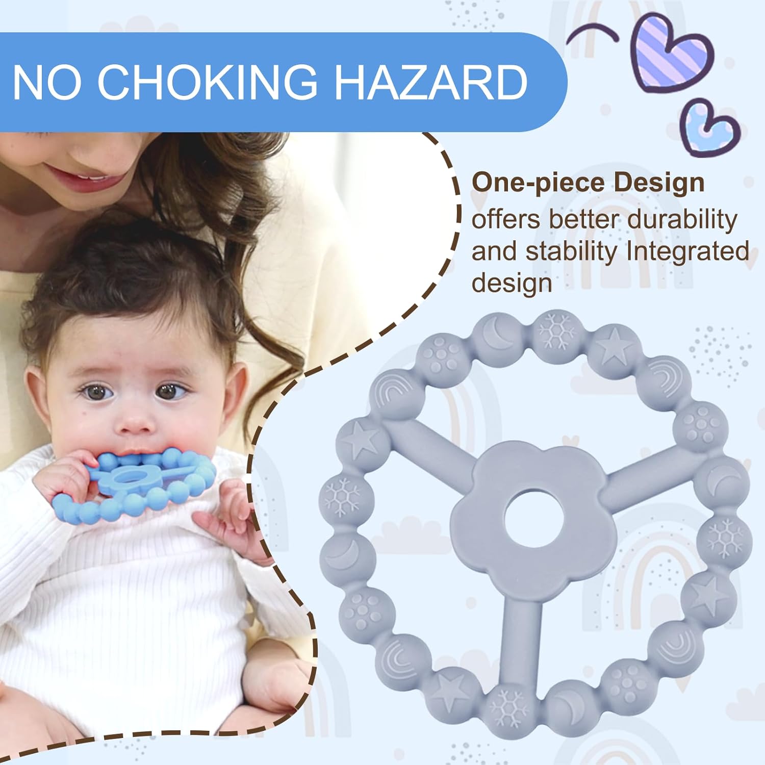 UNIQUE RING FOR BABY TEETHING TOYS: Our adorable baby teething toys have a unique pattern texture and round hollow out design. Patterns include stars, moon, snowflakes, clouds, etc., the pattern is three-dimensional, vivid and fun. The baby teethers center is flower hollowed out design, easy for baby’s grip and not easy to damage or deform. One-piece design, all parts are tightly connected, no removable small parts, will not cause choking hazards.