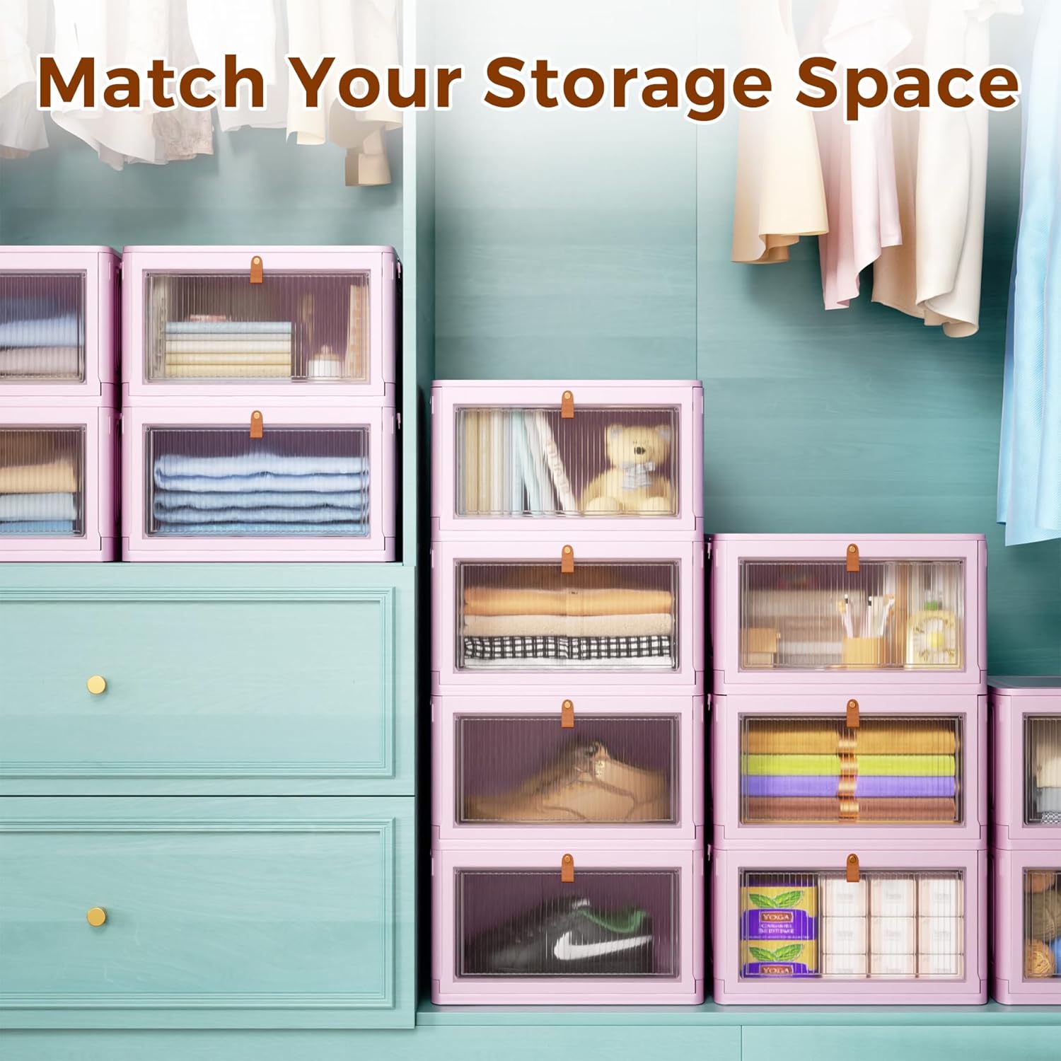 Easy to Use and Foldable – The plastic storage bins are easy to assemble without tools, you can stack storage boxes and assemble them into a bedding organization, clothes organizer or shoe storage cabinet etc. When not in use, the storage boxes can be folded to take up little space in your home or cars.