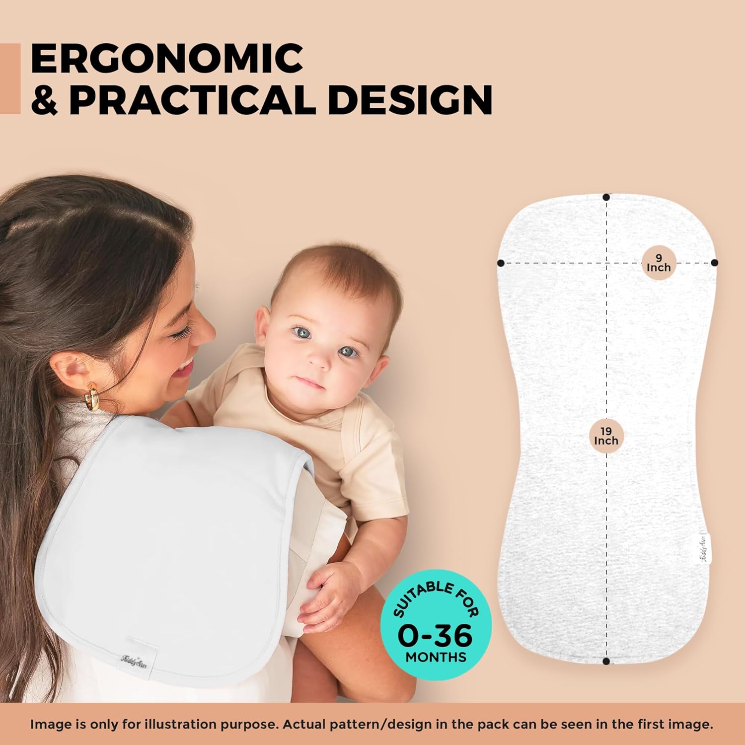 🌱100% ORGANIC COTTON FOR DELICATE SKIN: Our baby burp cloths are crafted from 100% organic cotton, making them hypoallergenic, soft, and gentle against your baby’s sensitive skin. Free from harmful chemicals and crafted with care, these cloths ensure that only the best touches your baby’s delicate cheeks. The breathable fabric is ideal for reducing irritation and allergies, giving your little one a comfortable burping experience.