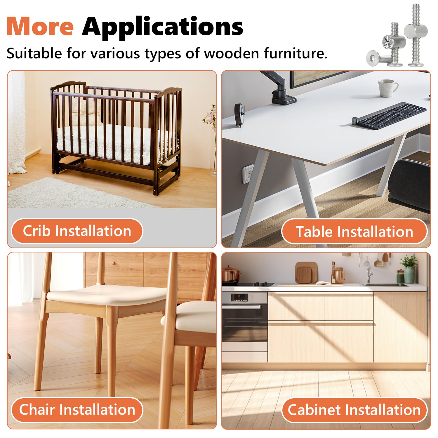 👨🔧【Wide Range of Applications】— kalote’s Crib Screws Replacement Set Bolts are suitable for furniture assembly (beds, tables, cabinets, chairs, etc.), carpentry projects (joining wood, planks, workbenches, kitchen countertops) and various other DIY projects. And they are great for crib replacement bolts, screw kits and bolts for bed!