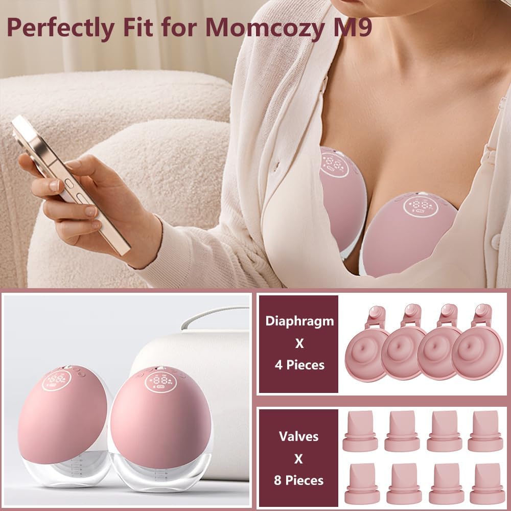 【Perfectly Compatibility with Momcozy M9】:Our duckbill valve and diaphragm kit have the same suction as the original M9 pump parts without any gap issues. They can perfectly meet the accessories you need when using M9 wearable breast pump and 100% compatible. (Attention :External plastic parts of valve and diaphragm are not included)