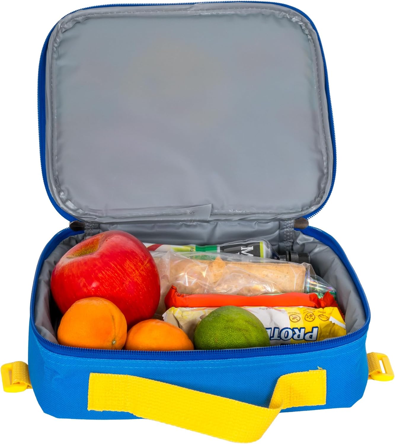 Insulated Minions Lunch Box: The detachable classic lunch box has a padded handle, foam insulation, and PEVA waterproof lining to keep food fresh all day at school or when traveling. Measures 7.5” x 9” x 3”.
