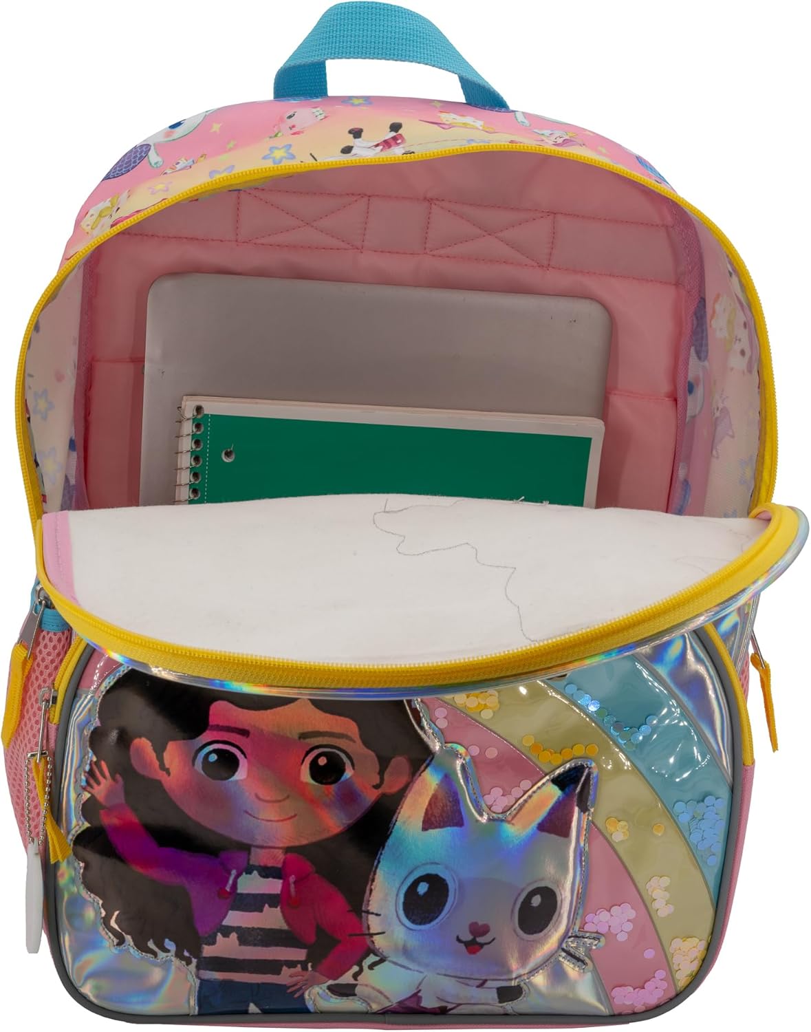 AI ACCESSORY INNOVATIONS Gabby’s Dollhouse 16” Backpack, Girls Iridescent Rainbow School Bag With Floating Confetti, Pink