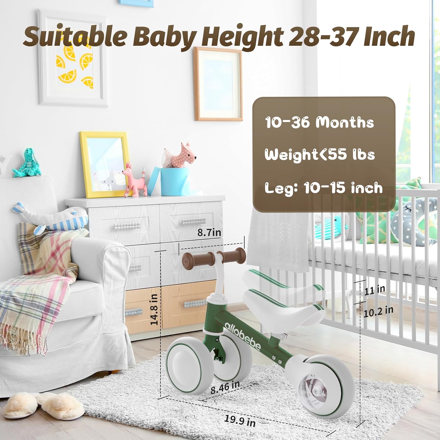 Motor Skills & Body Building – Allobebe baby balance bike is designed to help 1-year-old babies begin testing their mobility and active motor skills while developing muscle strength, balance, coordination, and confidence. The adjustable seat height (10.2”-11”) allows it to grow with your baby up to 3 years old.