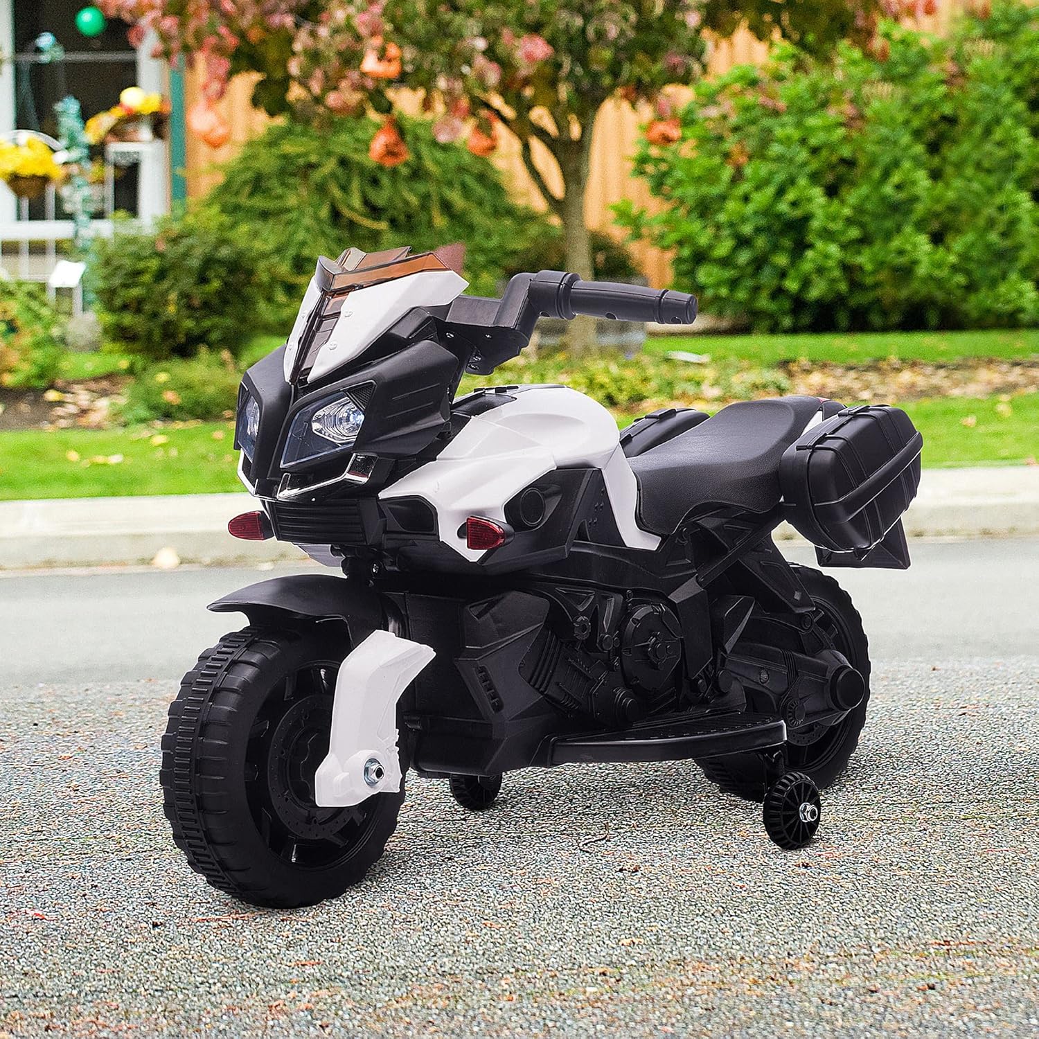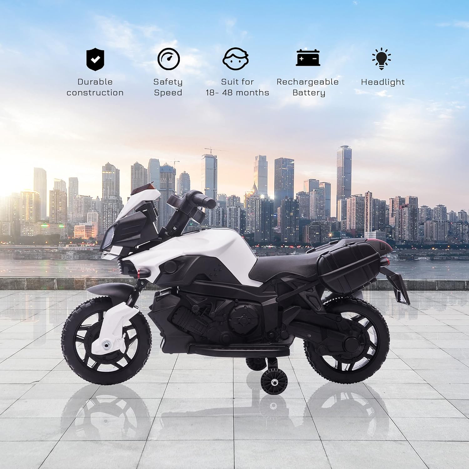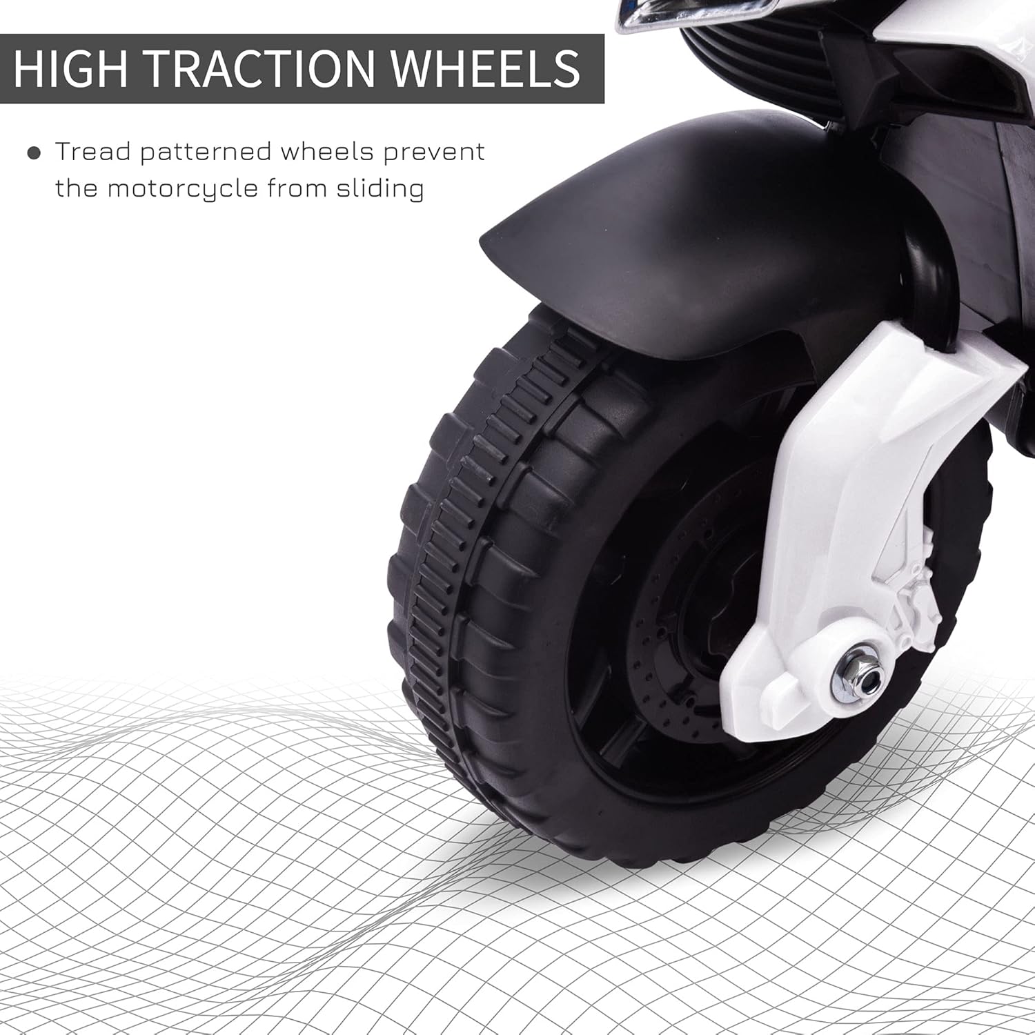 Training Wheels: Two large training wheels balance this kids’ electric motorcycle. Children hold on to the two handgrips for extra balance.