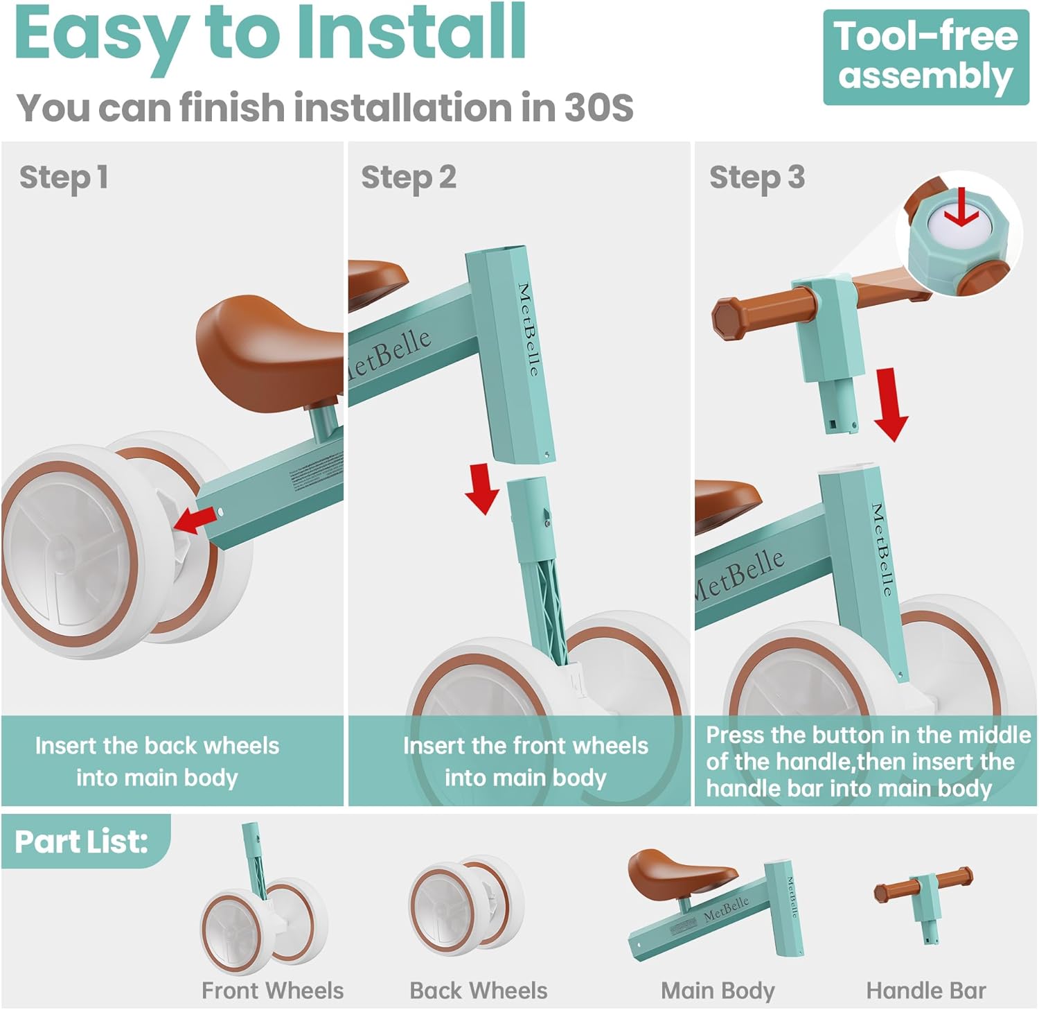 Easy to Assemble: Designed with convenience in mind, this balance bike 1 year old can be assembled in just 1 minute without any tools. Parents will appreciate the quick and simple setup, while kids will love riding it right away!