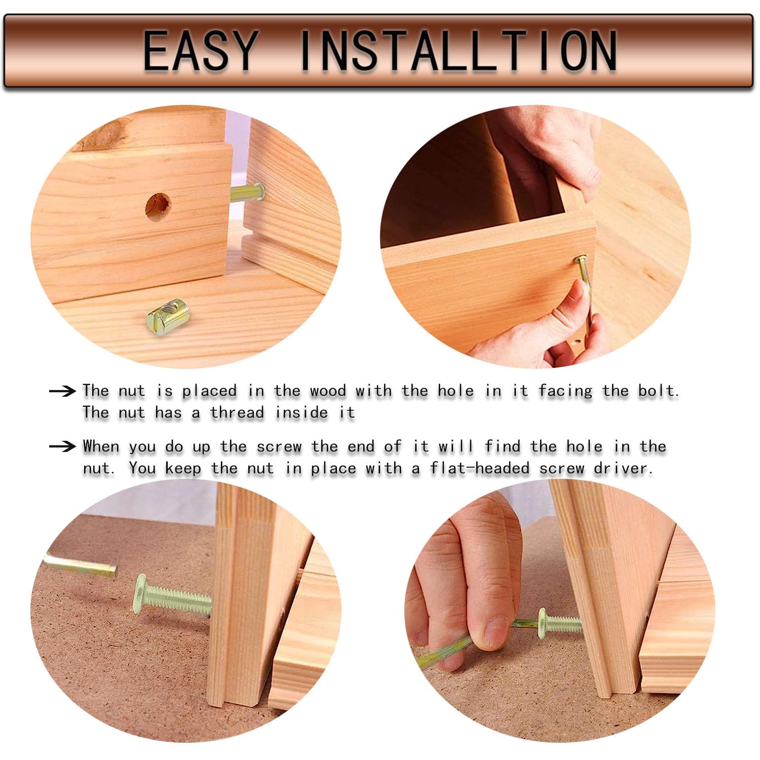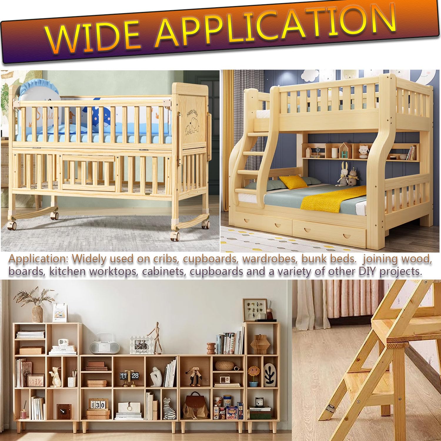 ♛♛Application:The Bolts for widely used on cribs, cupboards, wardrobes, bunk beds. joining wood, boards, kitchen worktops, cabinets, cupboards and a variety of other DIY projects. cots and flat pack furniture, also good for office appliance, communication equipments, ship assembly and other machinery industry